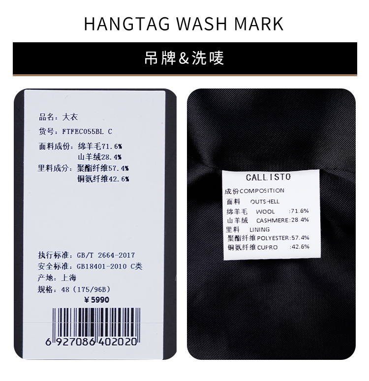 callisto灰色全羊毛手工大衣 FQFEC069C