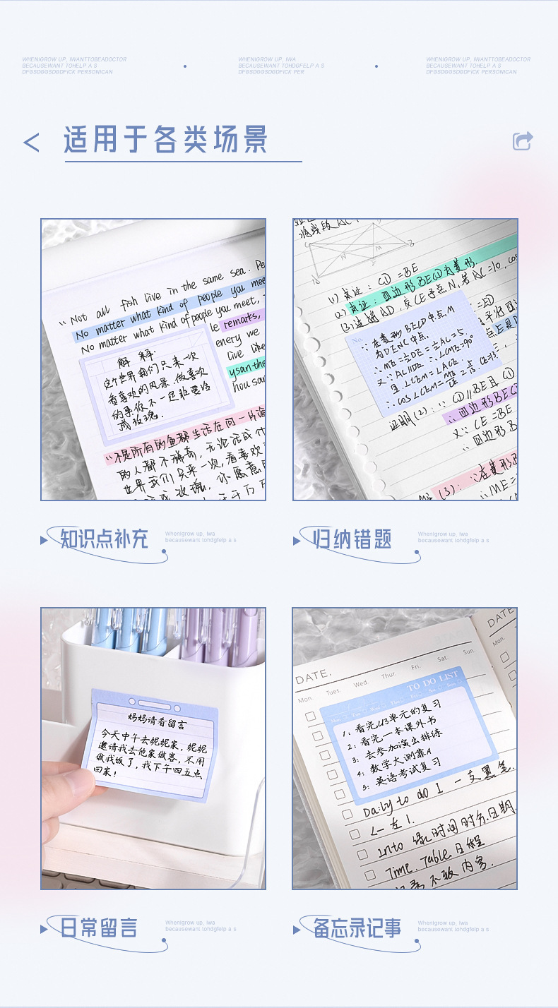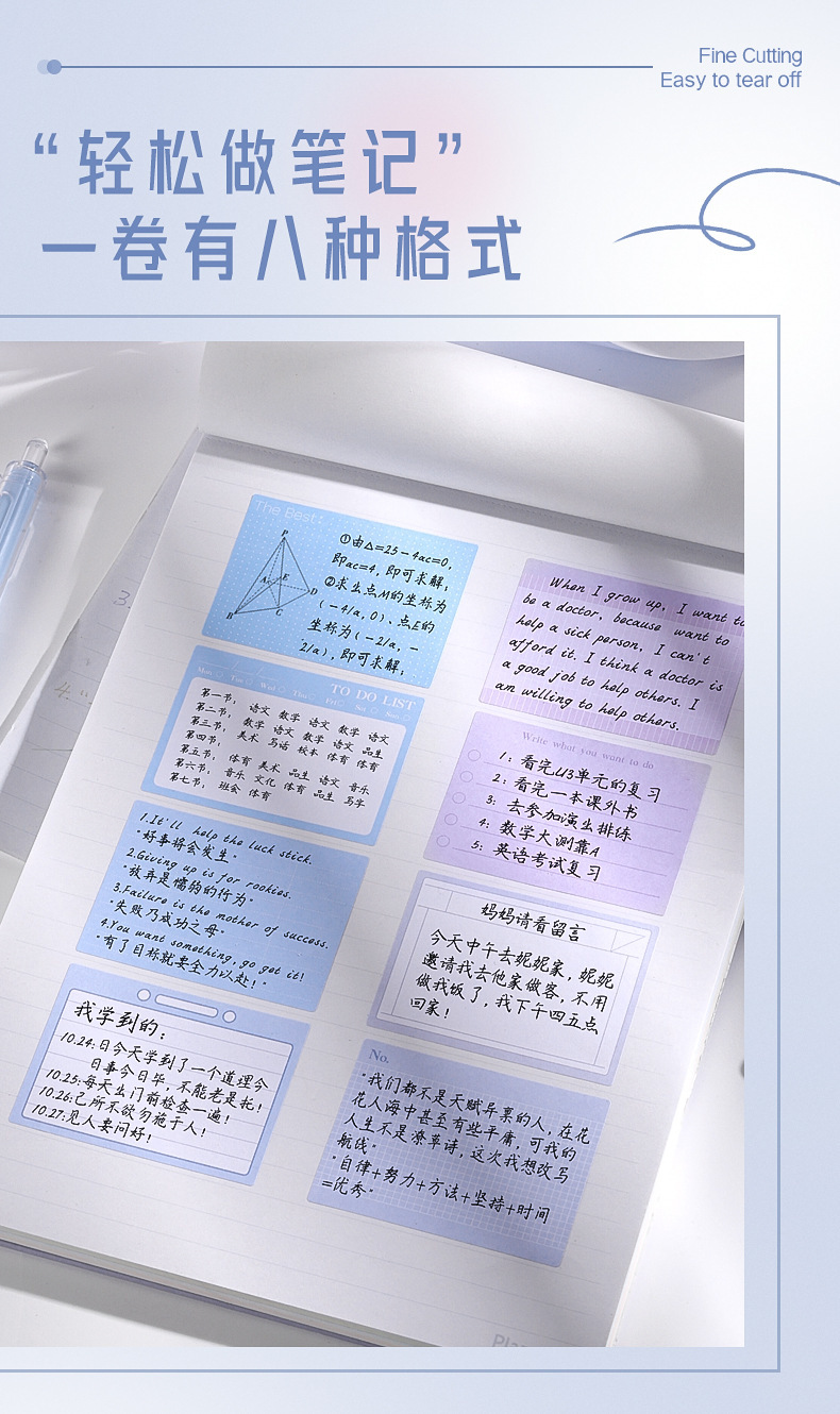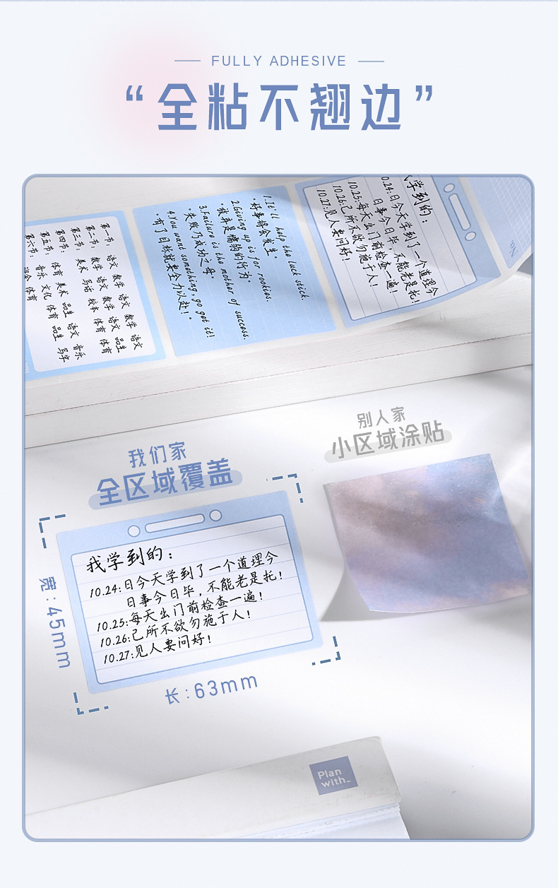 咔巴熊抽拉式便利贴高颜值错题便签贴纸学生用全粘性索引标签贴纸