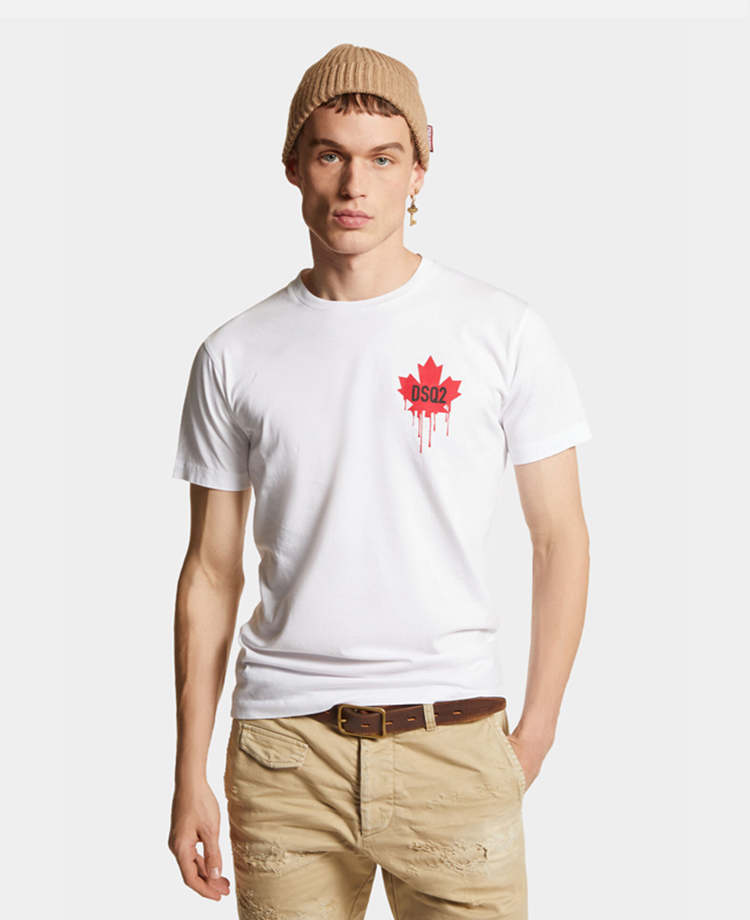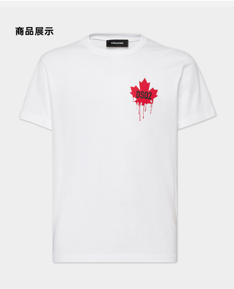 DSQUARED2 男士枫叶徽标印花棉质平纹针织圆领短袖T恤 白色 S74GD1358 D20014 100