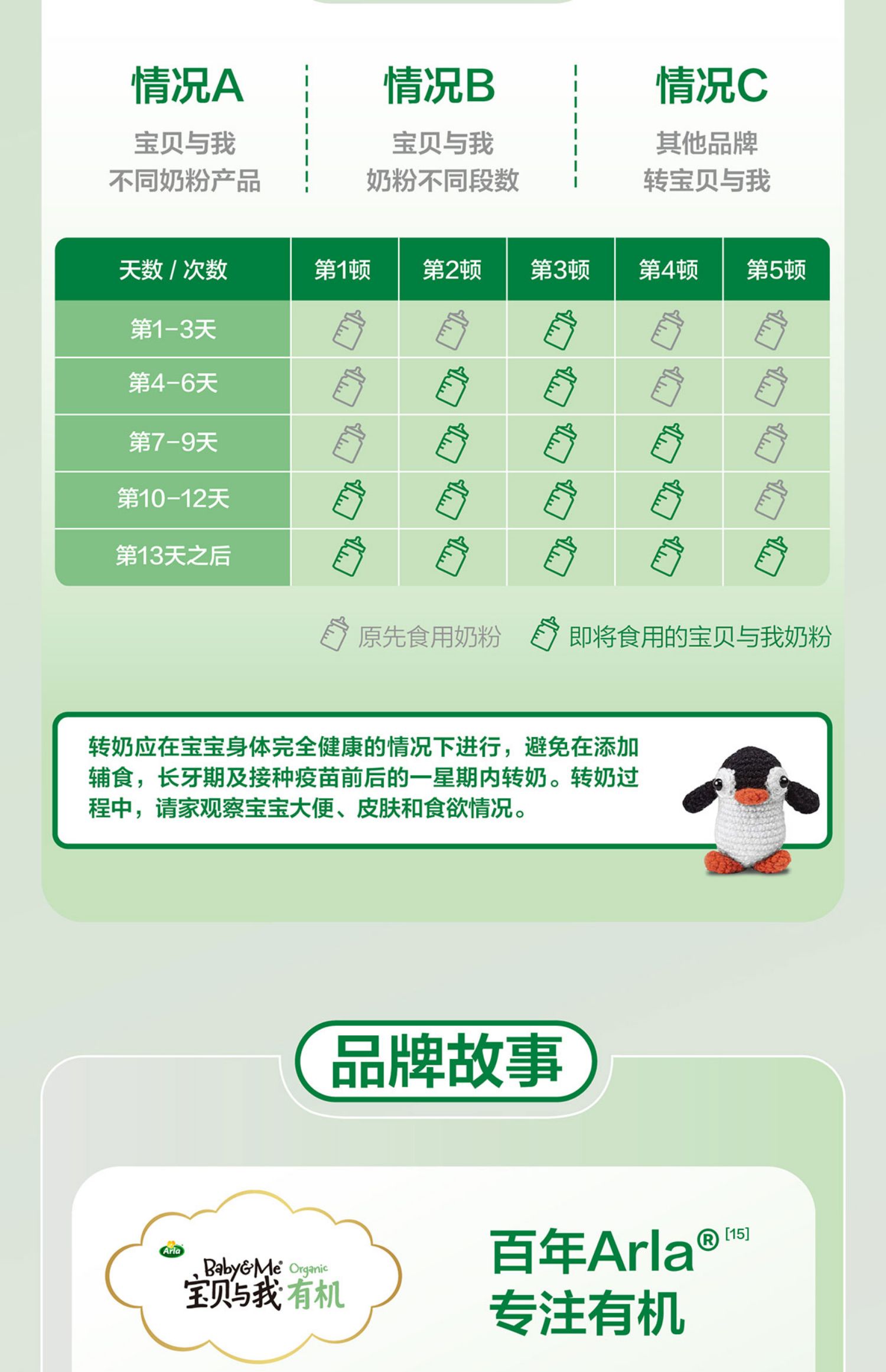 arla宝贝与我有机婴儿配方奶粉 2024新款 丹麦原装进口罐装800g 1段(0-6个月吃) 2段(6-12个月吃) 3段(12-36个月吃)