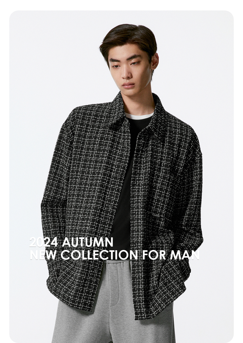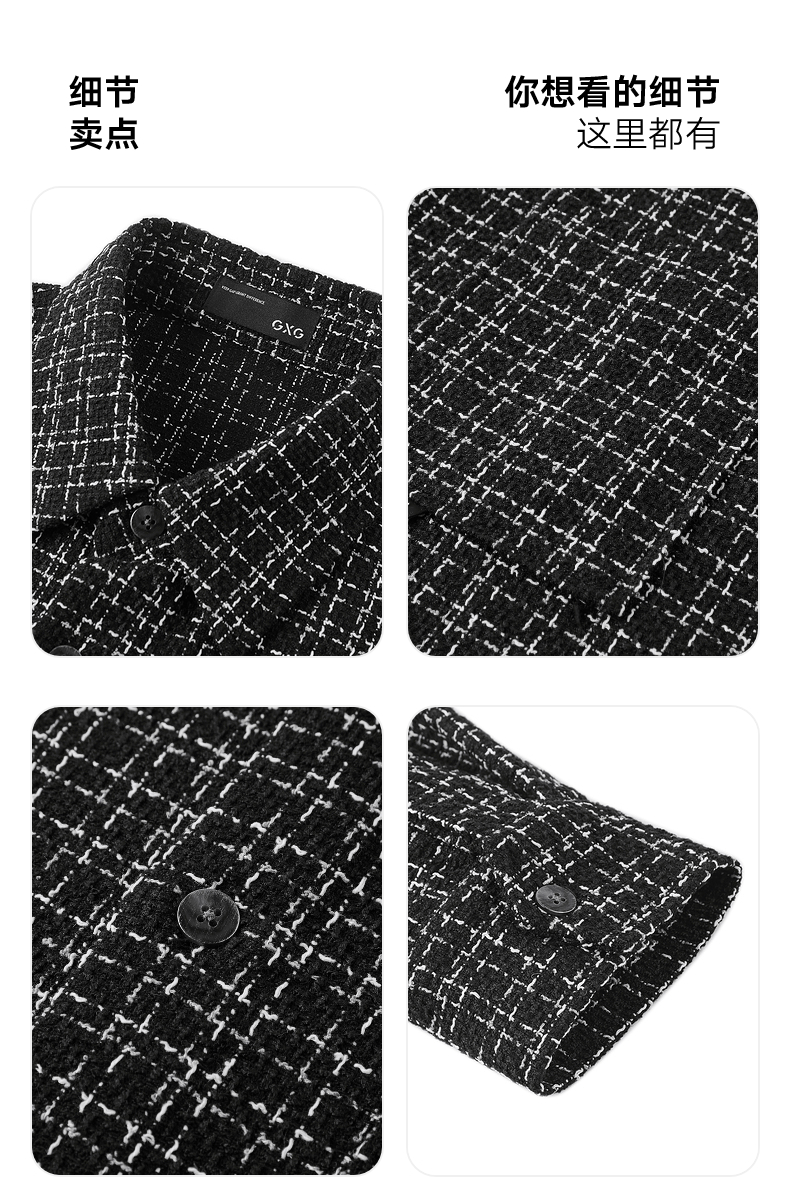 GXG男装 黑格小香风休闲长袖衬衫外套男士24年秋季热卖G24X033041