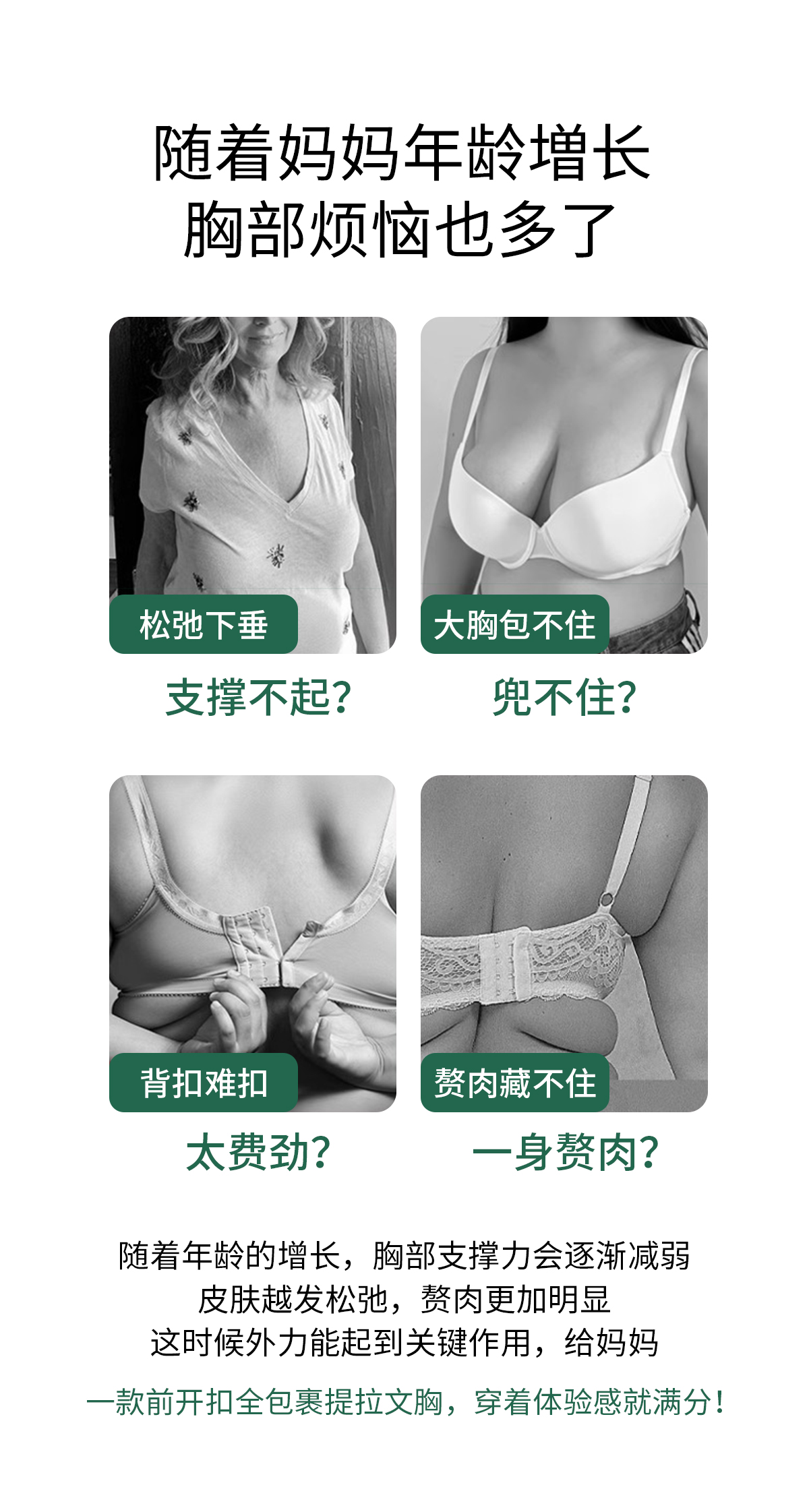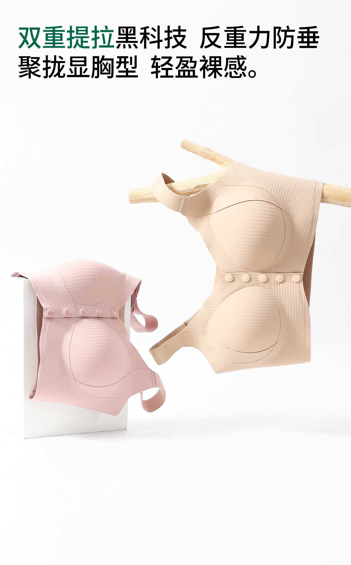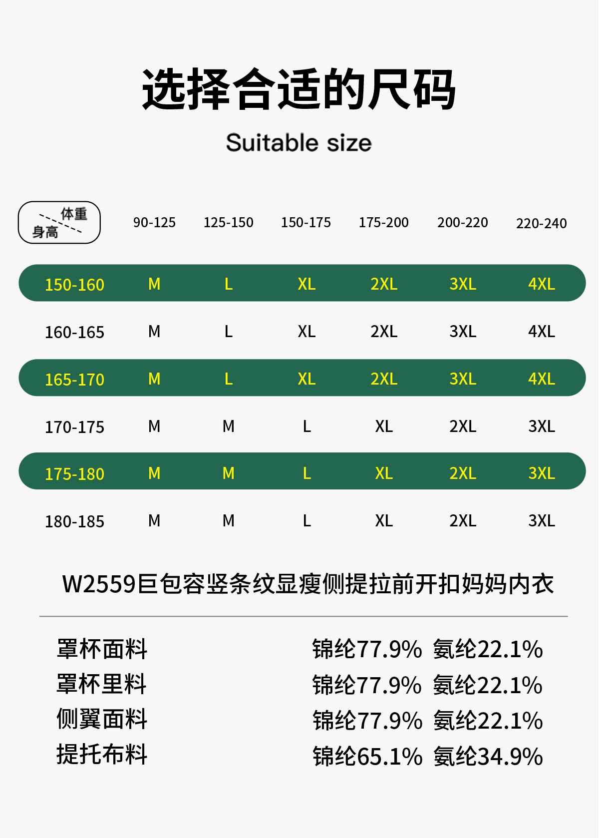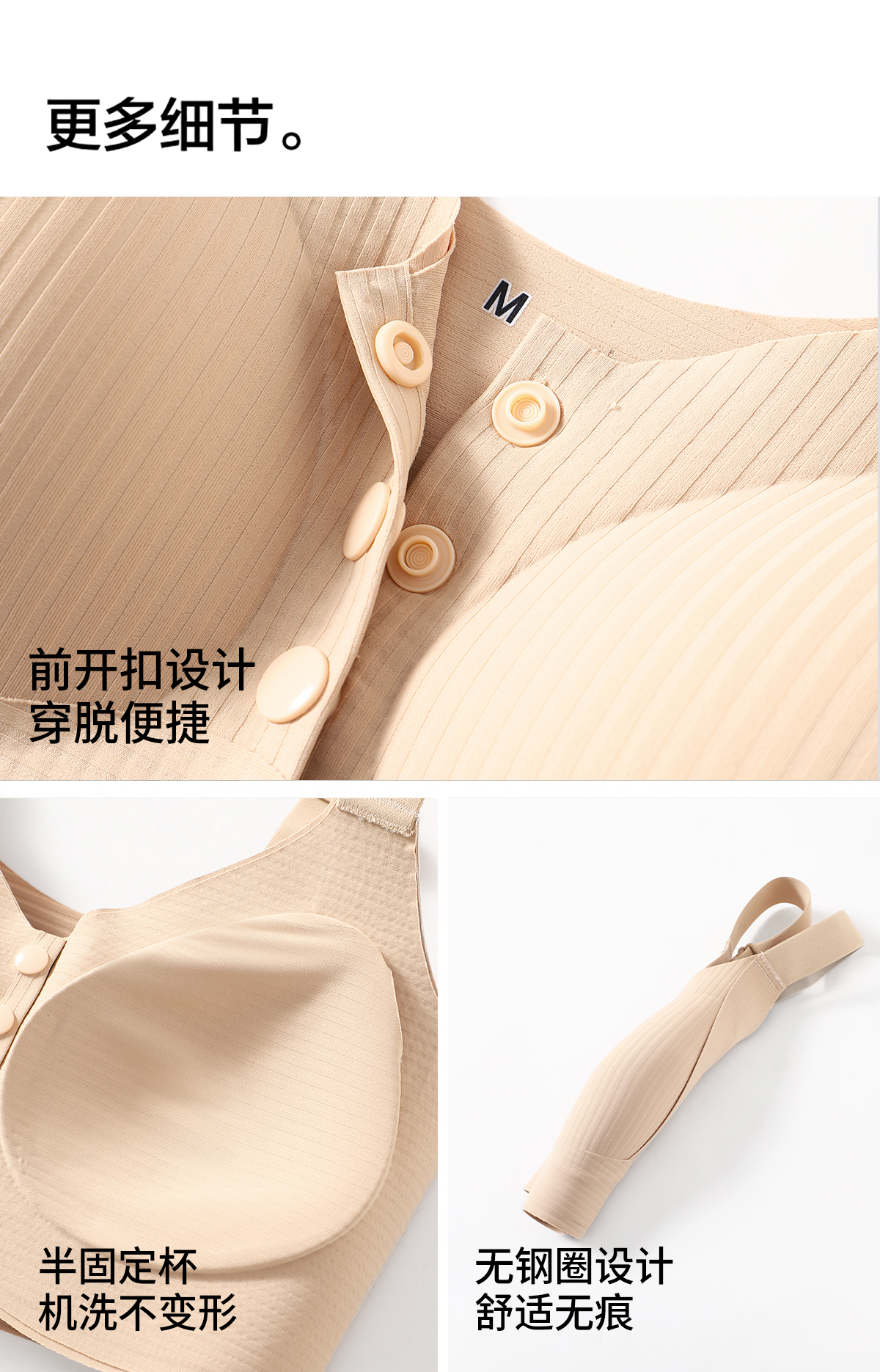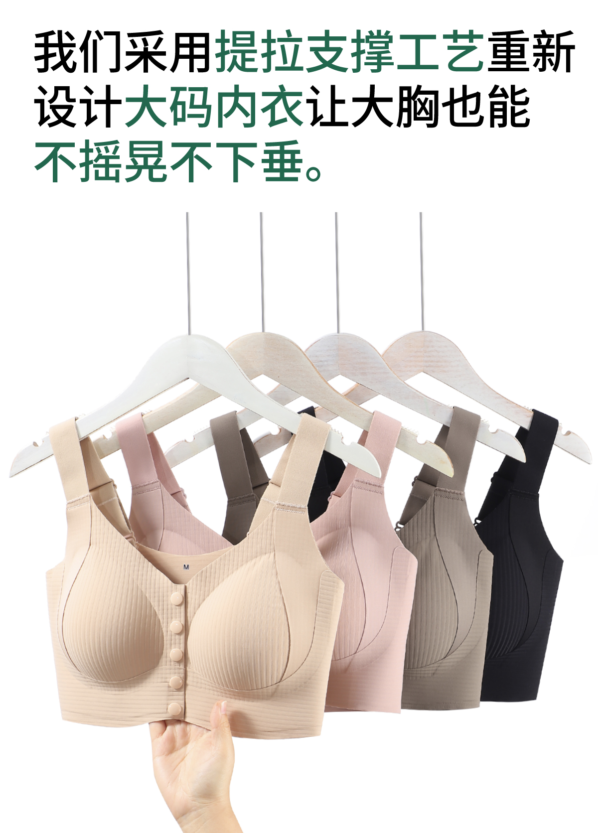 W2559#巨包容竖条纹显瘦侧提拉前开扣妈妈内衣半固定杯垫全包式罩杯 无钢圈【卡码拍小一码,组合装需要自选颜色联系客服备注】