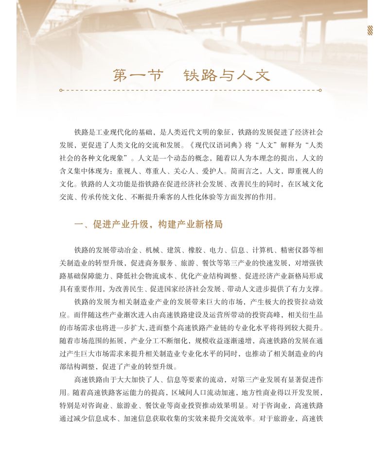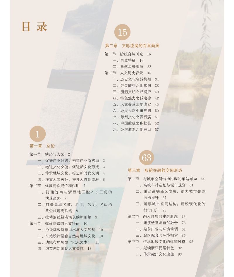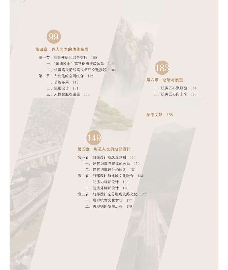 全书共分为总论、文脉流淌的百里画廊、形韵交融的空间形态、以人为本的功能布局和彰显人文的细部设计五章。编写时从铁路与人文的关系入手,将沿线各城镇的自然风光及人文历史背景一并交代,将车站选址与建筑设计时的人文思路呈现给读者,将城市综合枢纽的设计理念娓娓道来,是一本结合了工程技术与人文情怀的图书。全书除引用大量名诗名篇外,还配有精美的图片,给读者以美的享受。本书是一本不可多得的科学与人文交融的图书,将成为铁路领域与文化产业融合发展的典范。