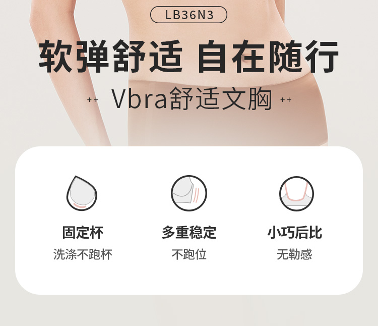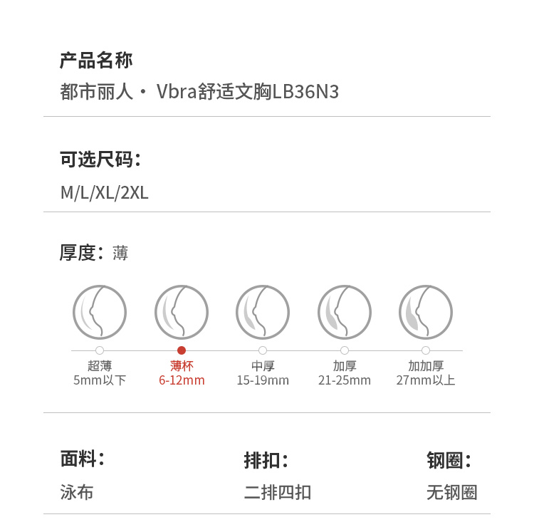 都市丽人Vbra泳布零感内衣薄款3/4杯无钢圈二排扣新年本命年红品LB36N3