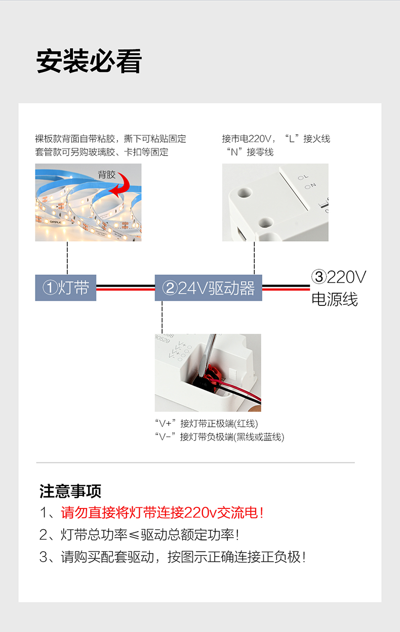 欧普(OPPLE)灯带Ra90低压24v裸板贴片自粘客厅吊顶led线形性灯条虹煦IV