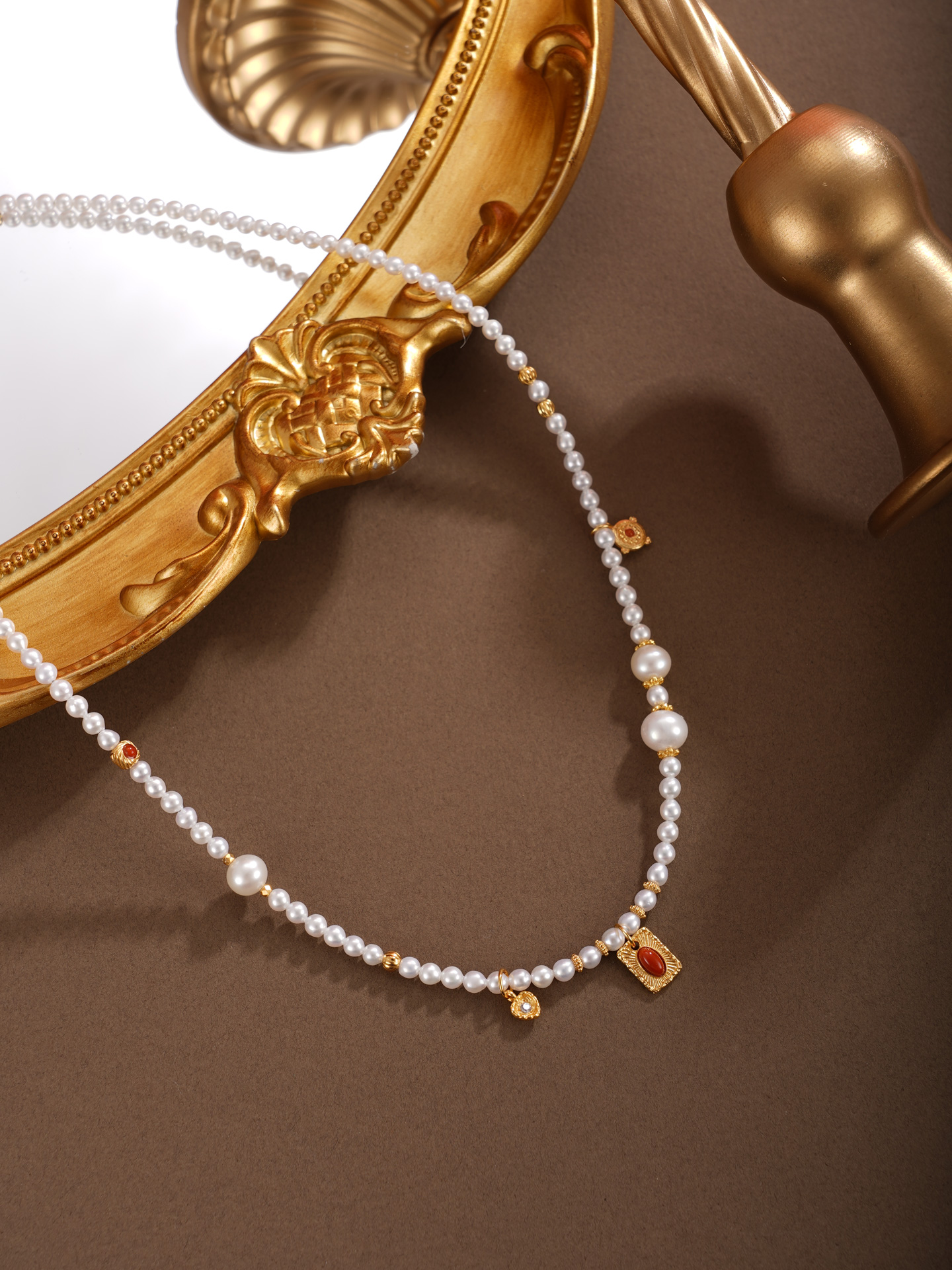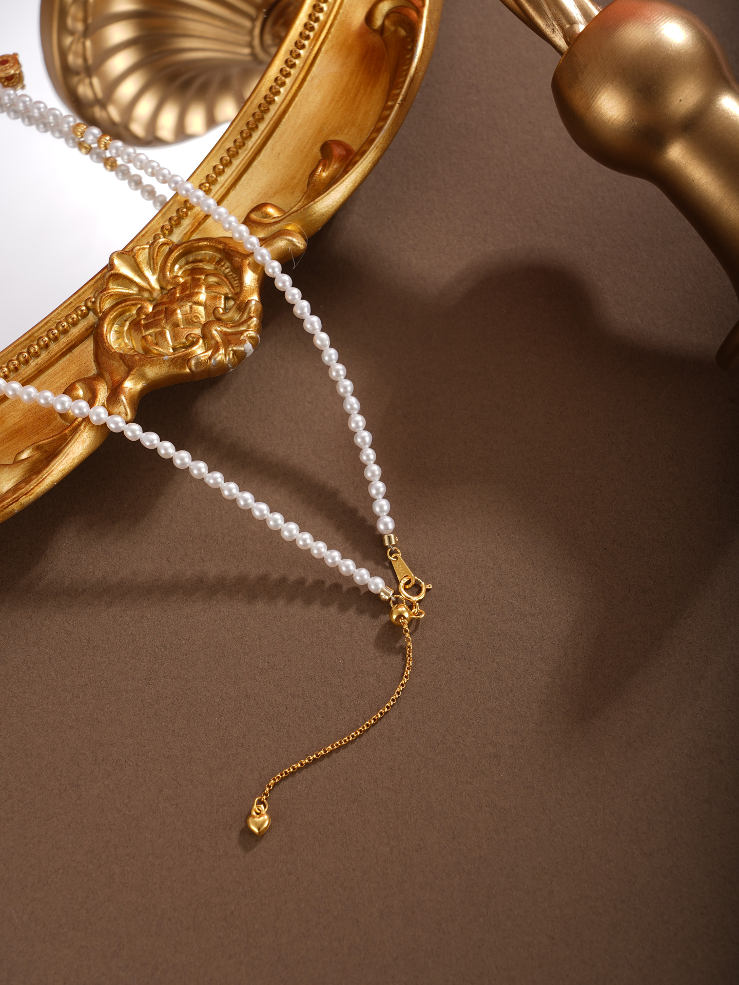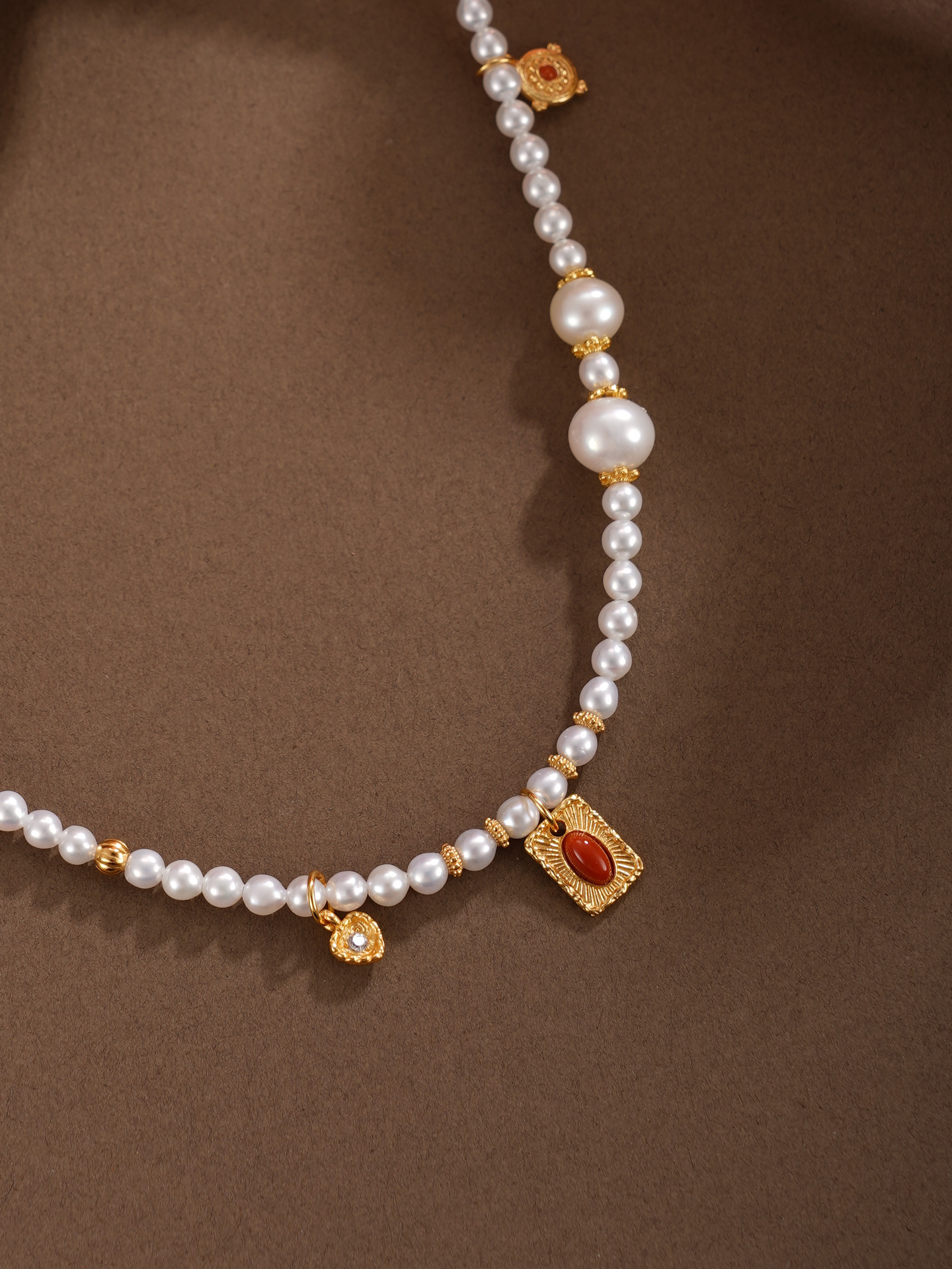 子佩集【热恋之爱】银S925珍珠项链【QNX0001】3mm小珠6.8mm大珠南红镀金方牌爱心2512