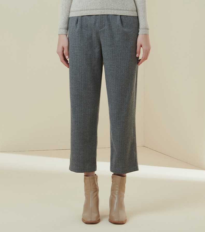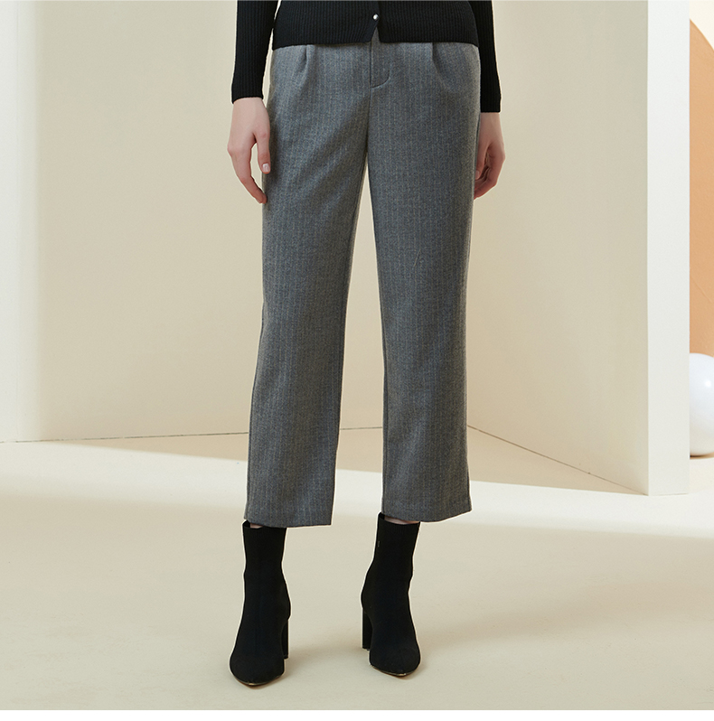 METTE21年秋冬女士羊毛裤轻薄舒适高腰小直筒休闲裤时尚九分裤