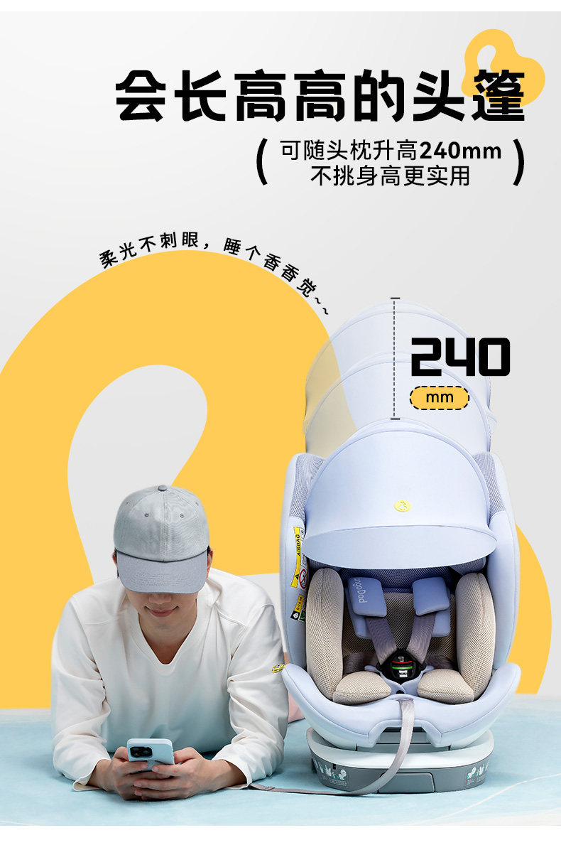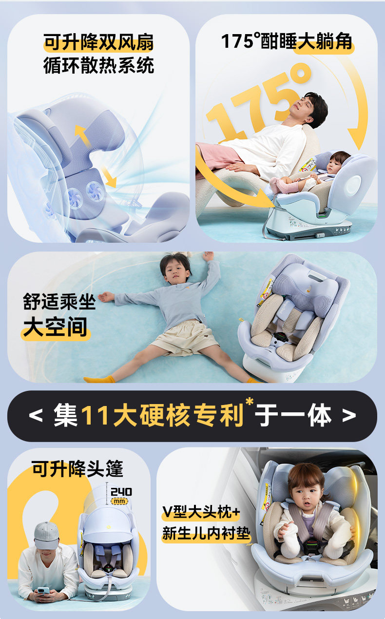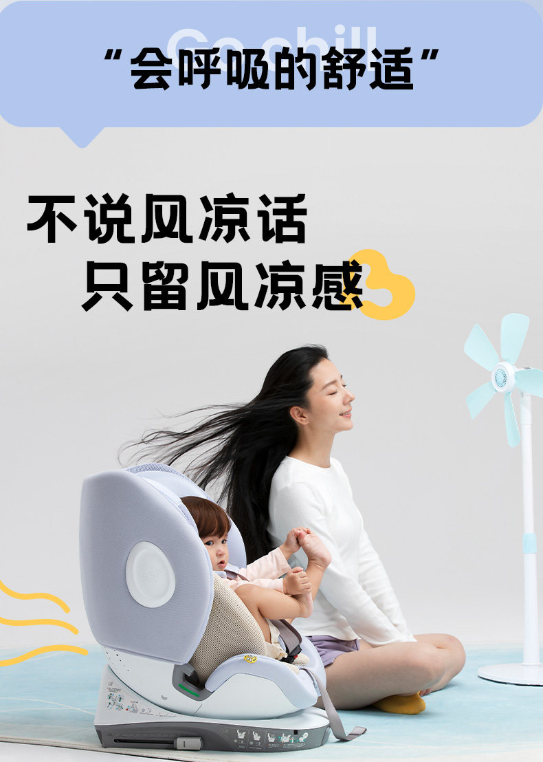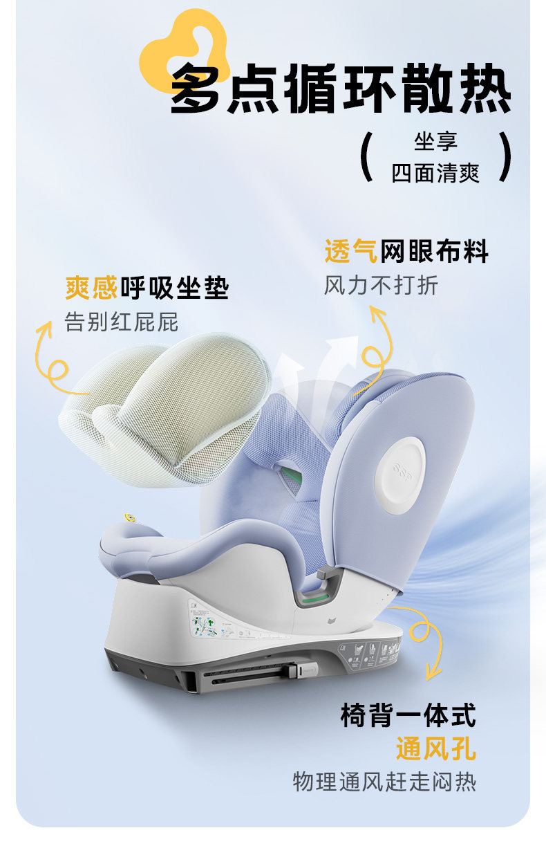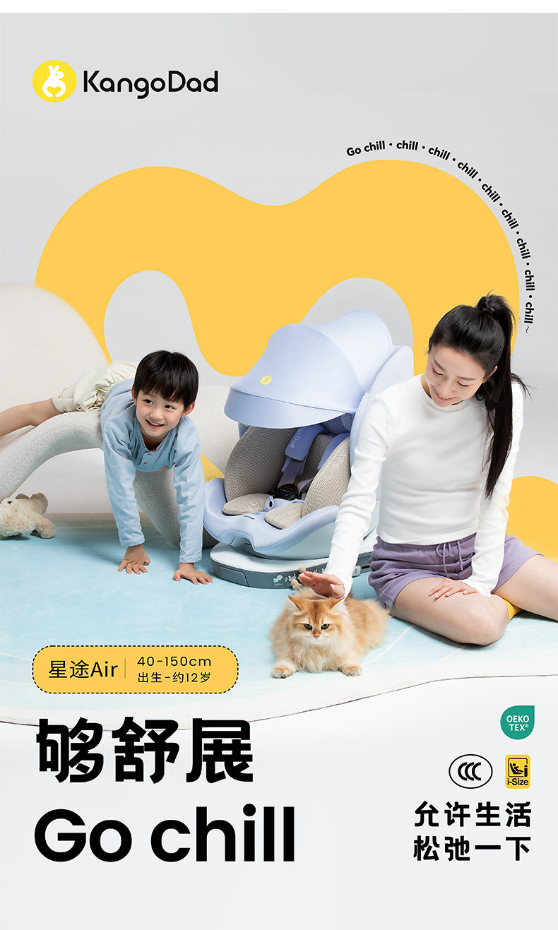 袋鼠爸爸星途Air新国标儿童安全座椅0-12岁通风遮阳175°大躺角