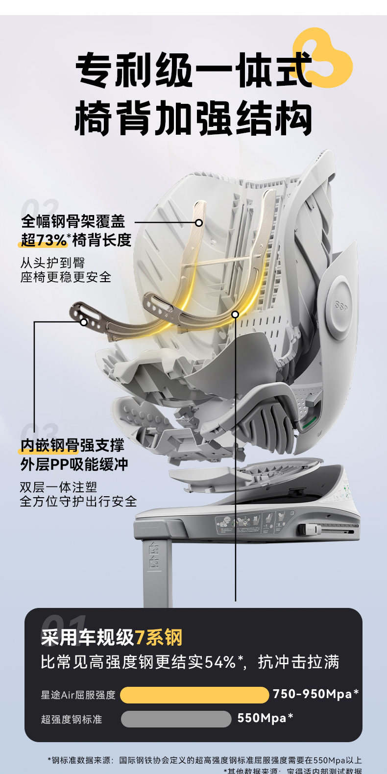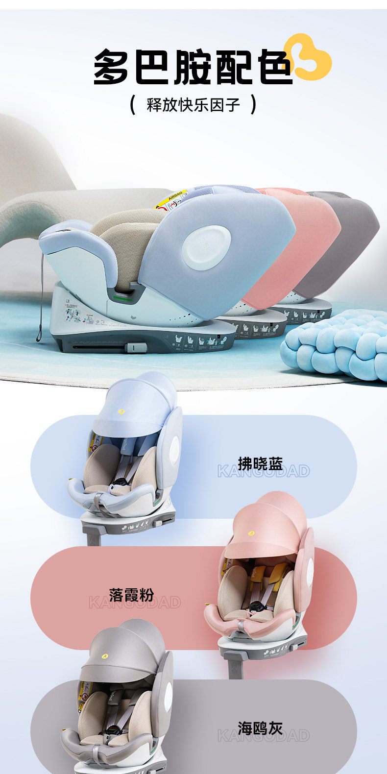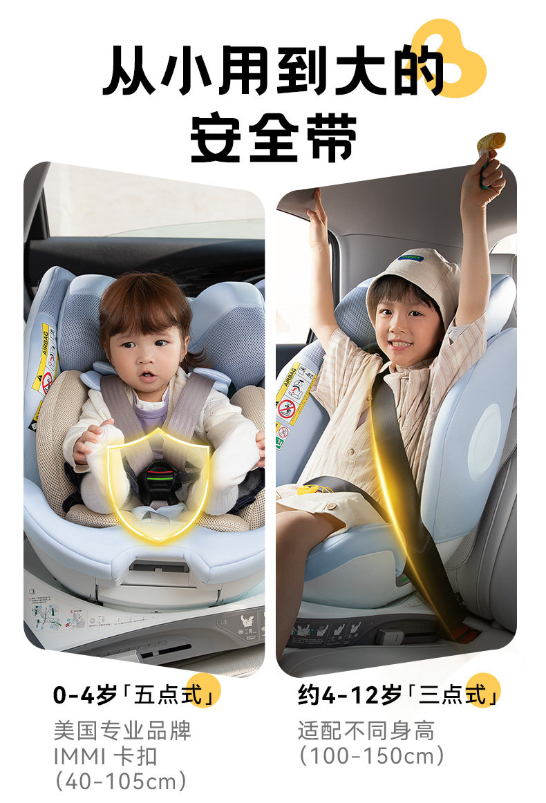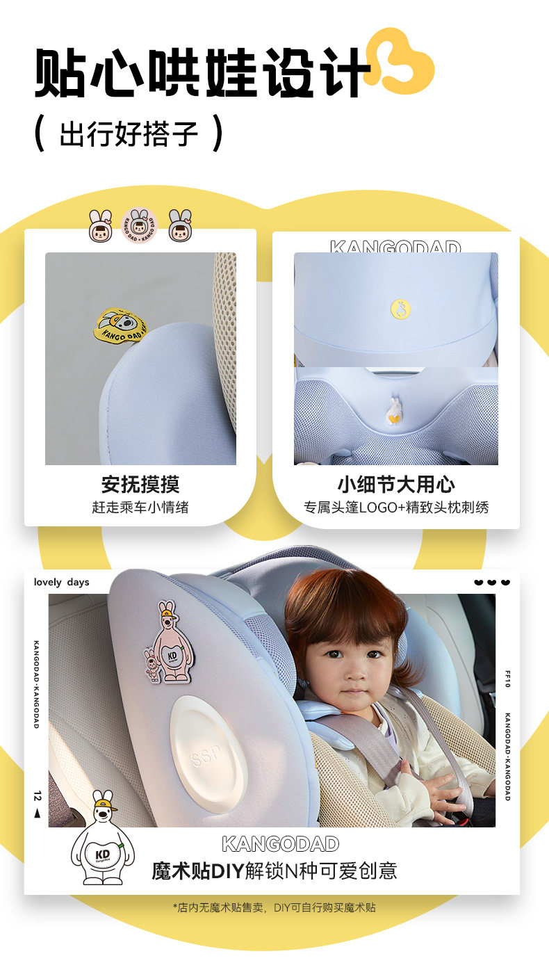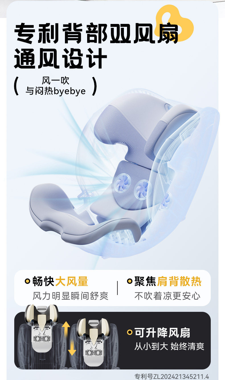 袋鼠爸爸星途Air新国标儿童安全座椅0-12岁通风遮阳175°大躺角