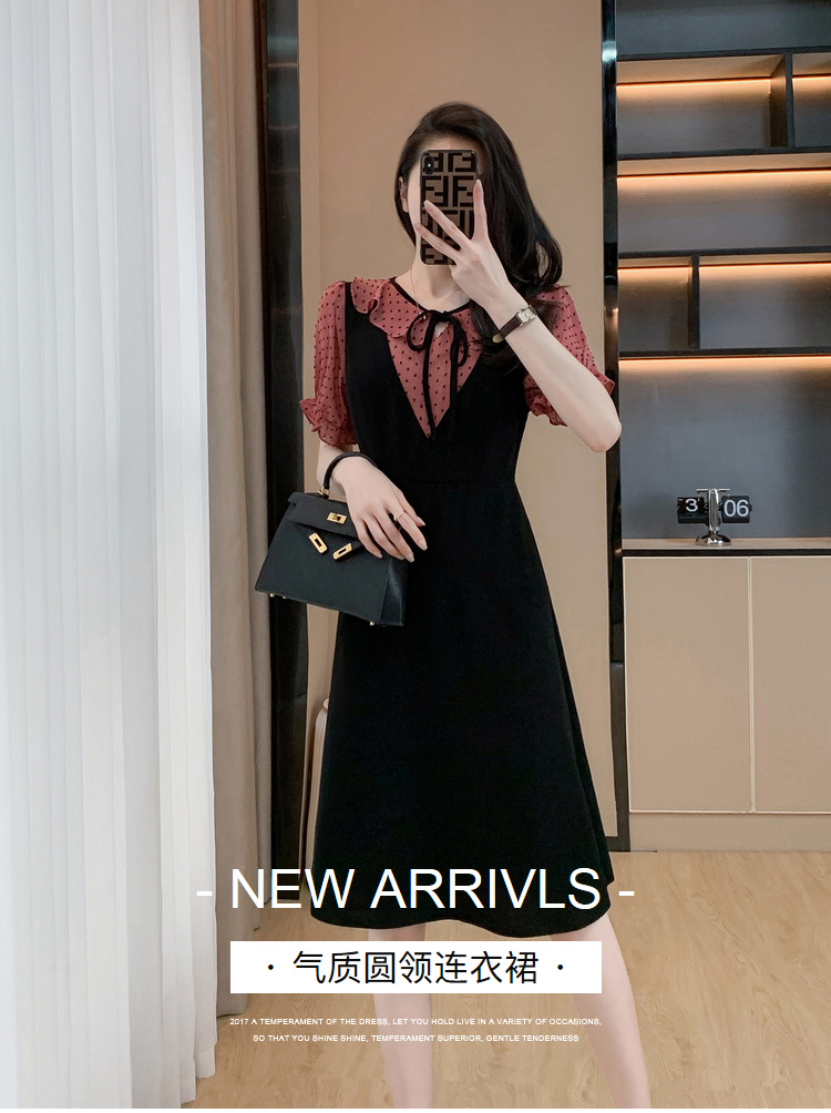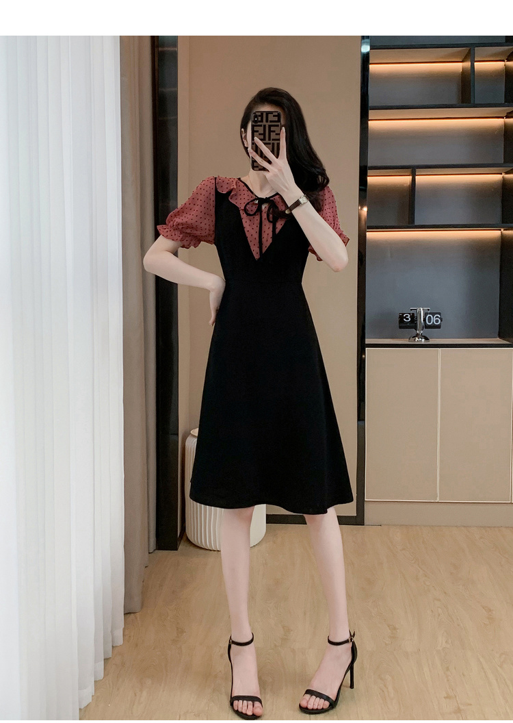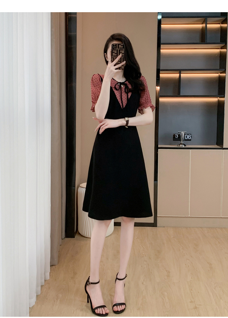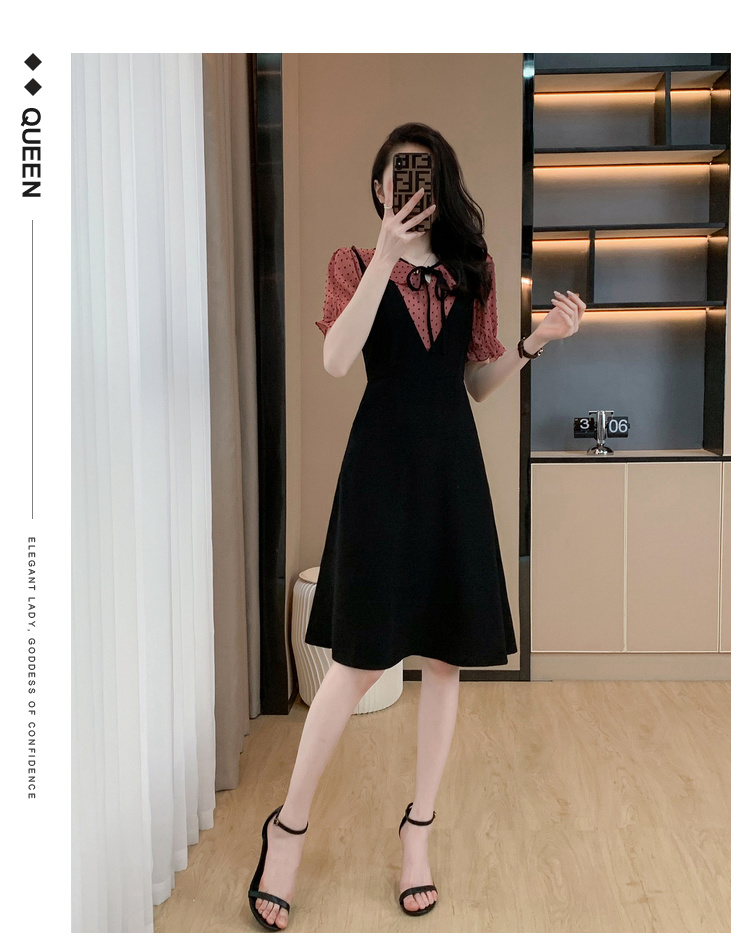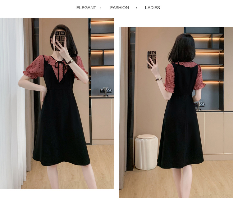 奢姿2024年夏装新款大码女装撞色拼接连衣裙胖妹妹绑带设计裙子9932890825