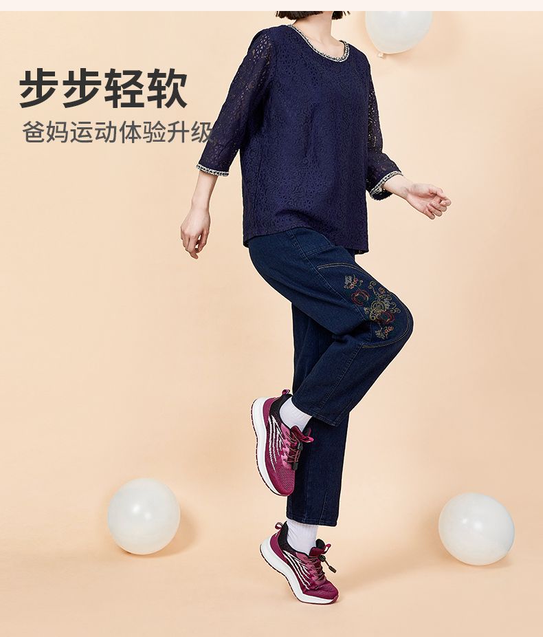 回力妈妈鞋子秋季透气网面鞋女轻便舒适休闲鞋中老年人健步鞋女款