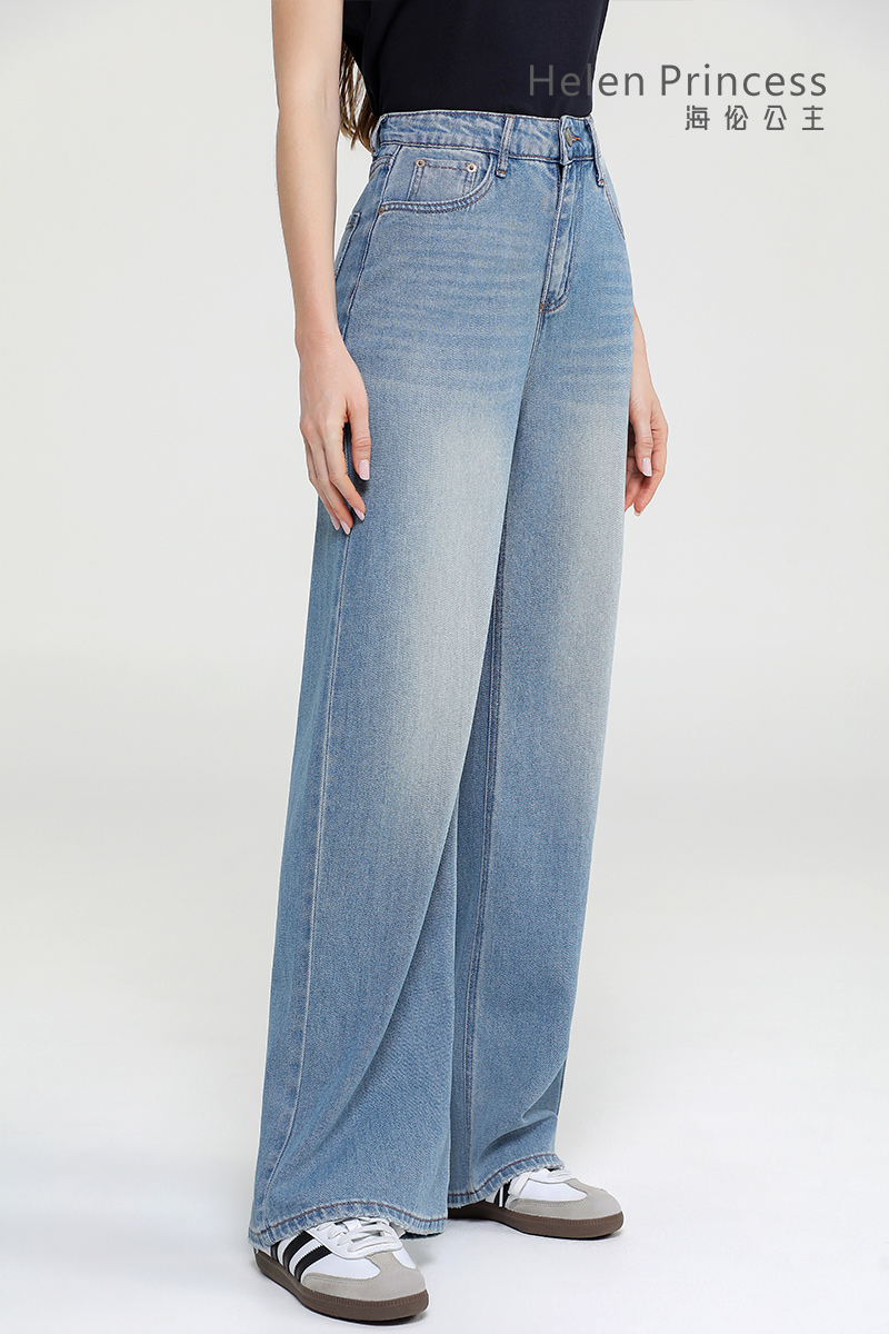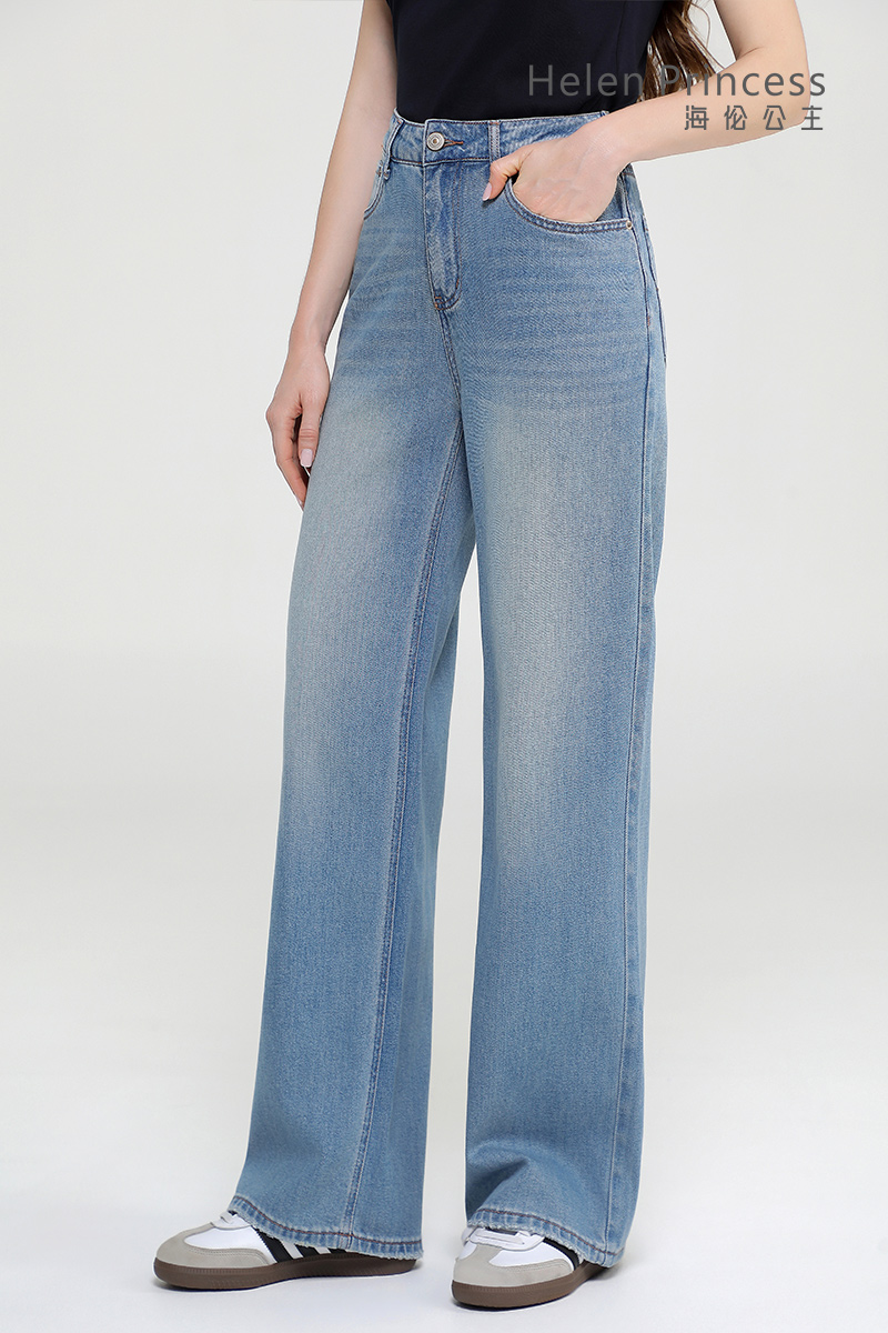 经典高腰设计优化身材比例,直筒阔腿裤型宽松不贴腿,修饰各种腿型,垂坠感裤身利落有型,清爽浅蓝调百搭不挑风格,日常通勤、出街都能穿出随性时髦感,是衣柜里的百搭单品。