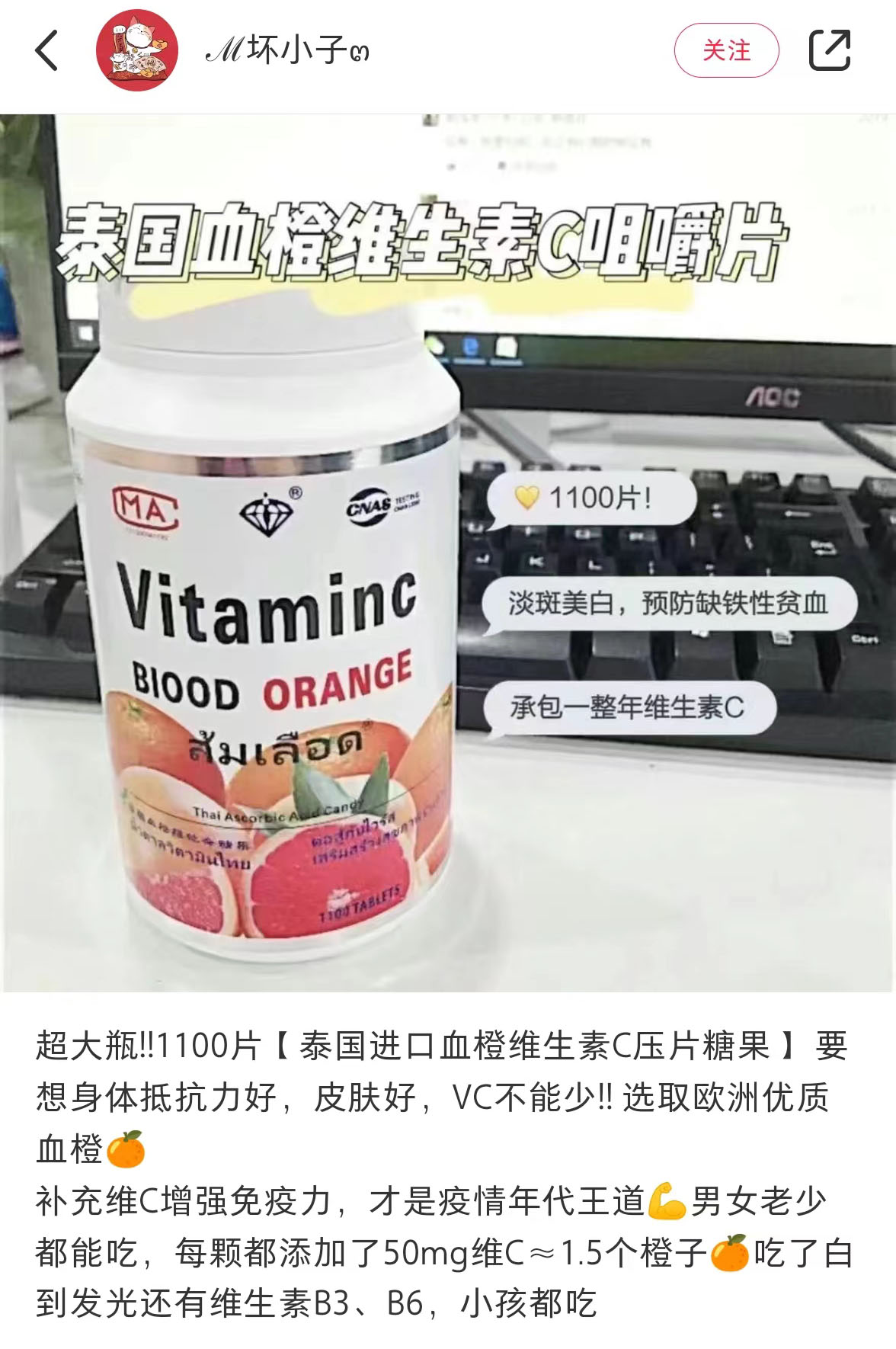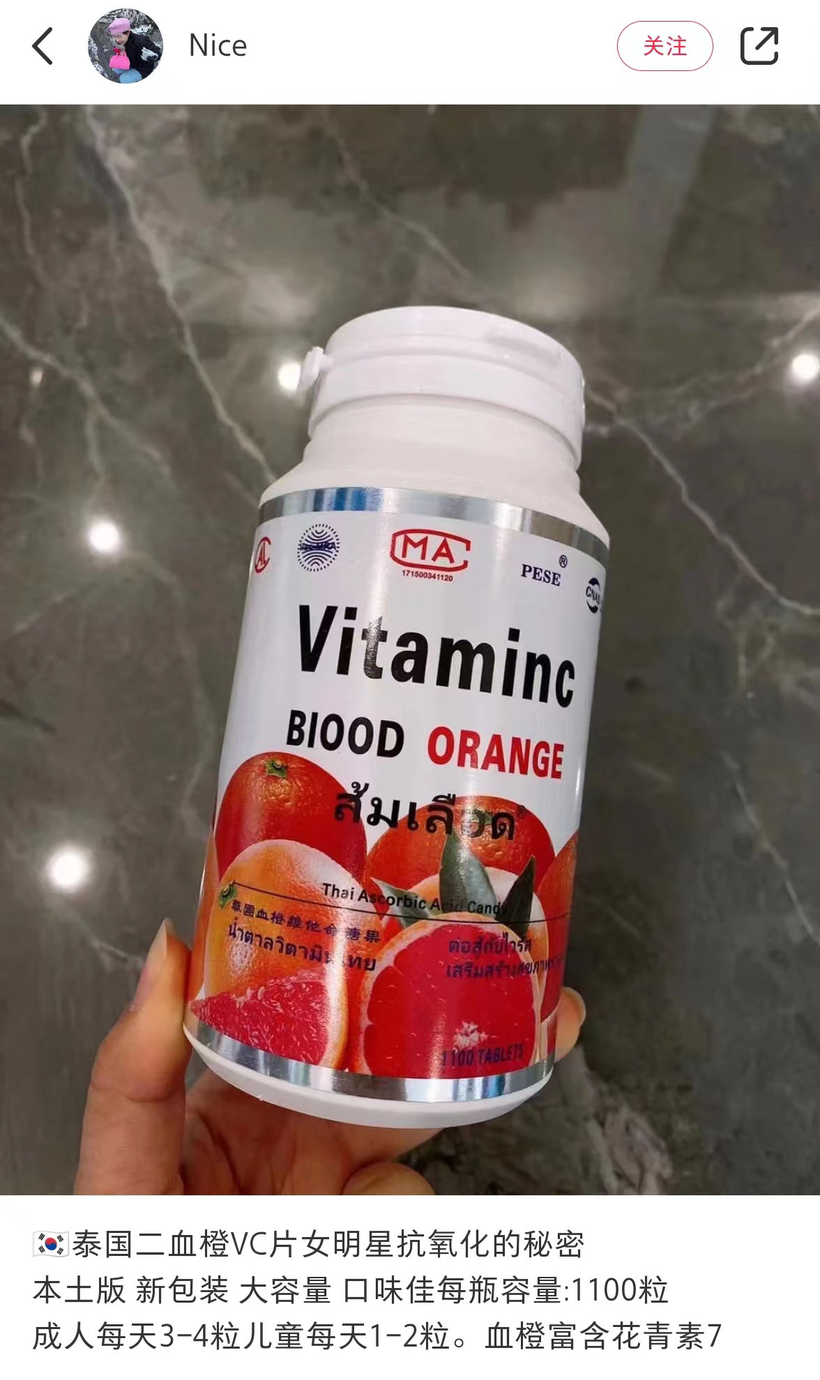 超大瓶❗1100片【泰国进口血橙维C片】💥