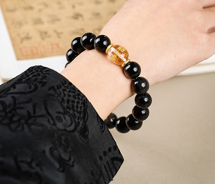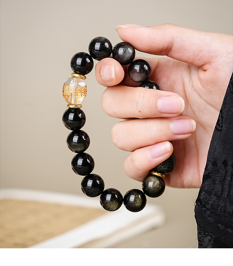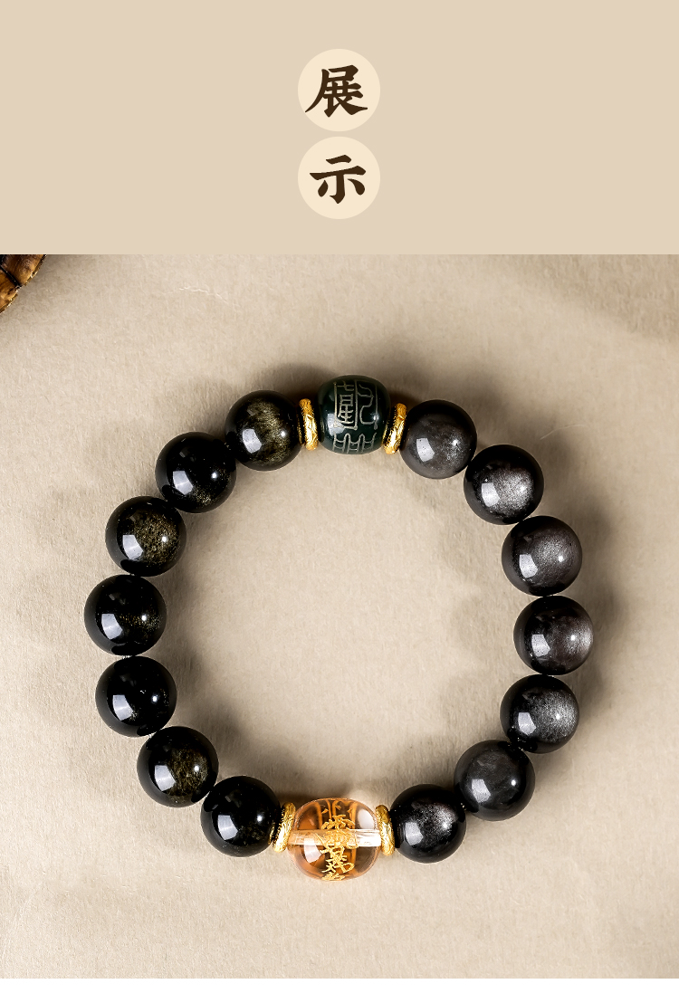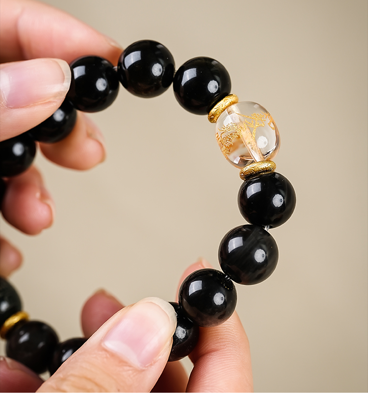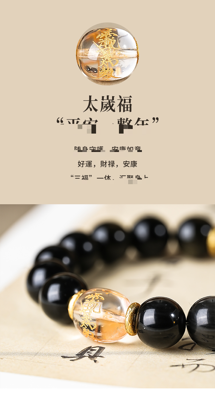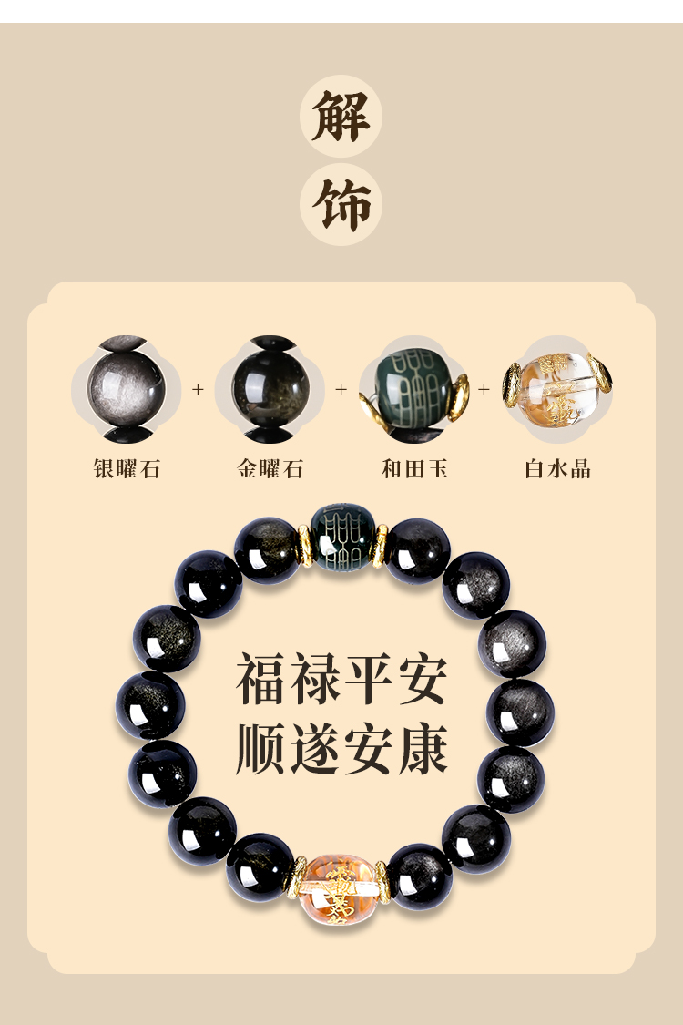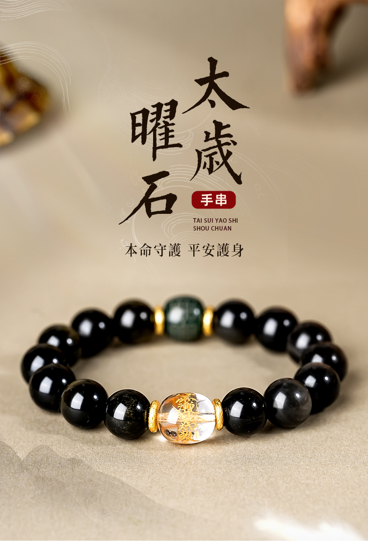 太歲金曜石银曜石和田玉白水晶黑曜石手串本命生肖手串男女同款
