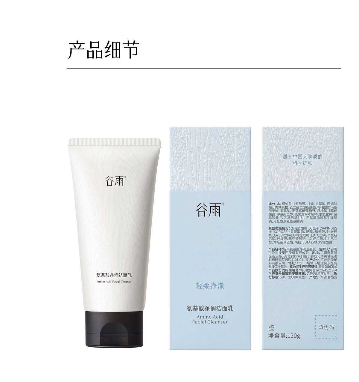 【三八焕新周】谷雨氨基酸洁面乳120g 大容量深彻净颜 温和不伤肤