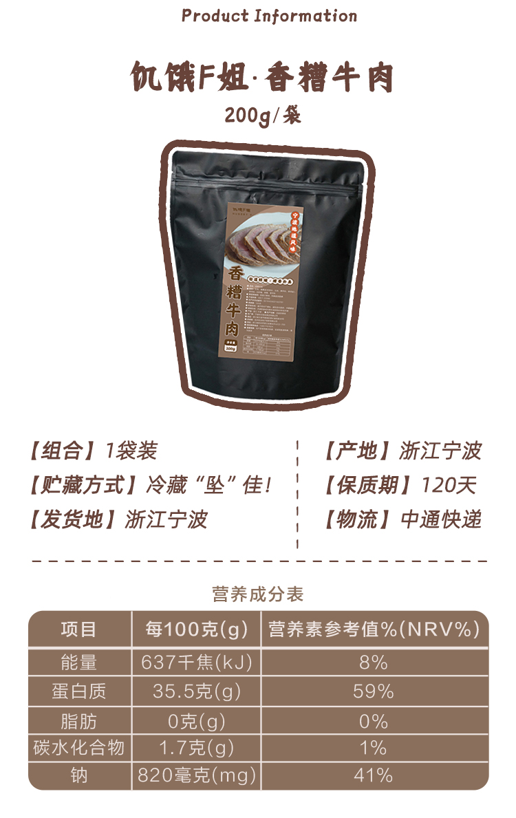 饥饿F姐·宁波香糟牛肉(200g/袋)劲道鲜嫩,糟香扑鼻