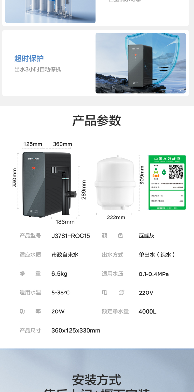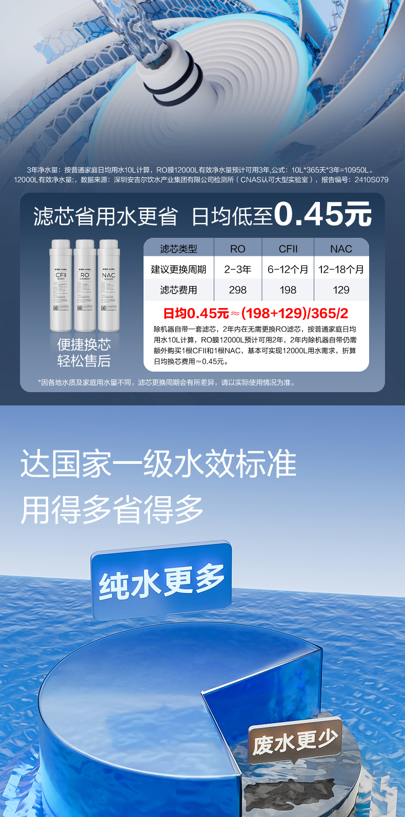 安吉尔E-Tech3800 净水器反渗透RO膜家用直饮