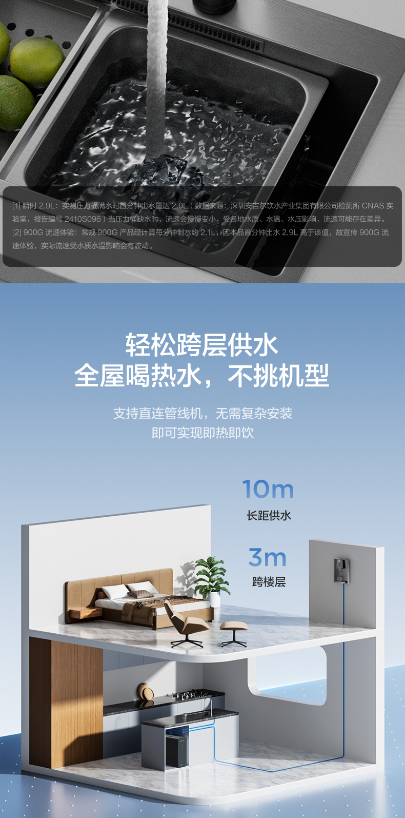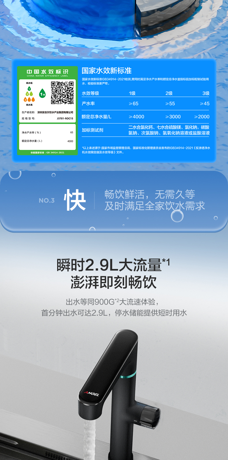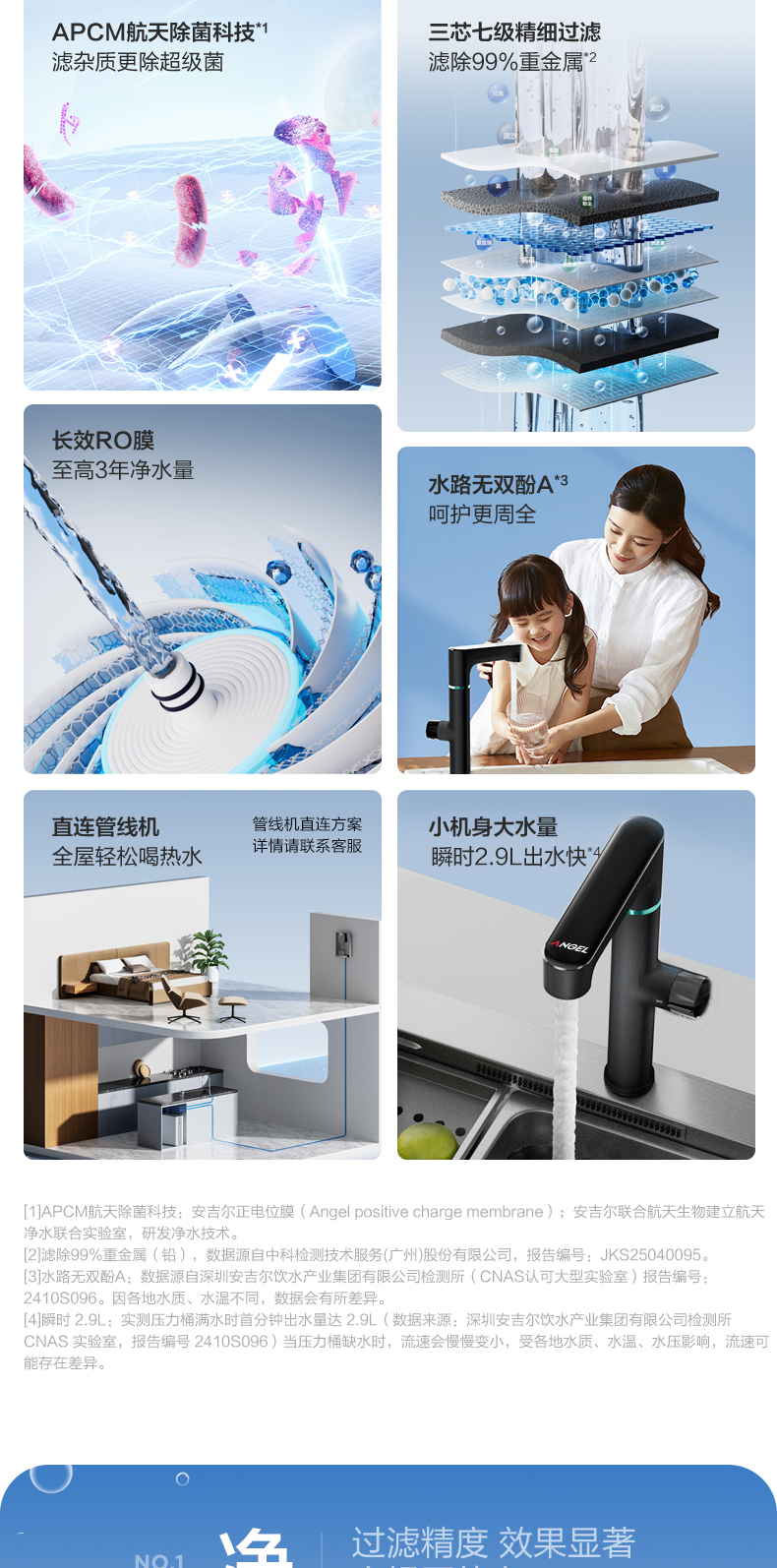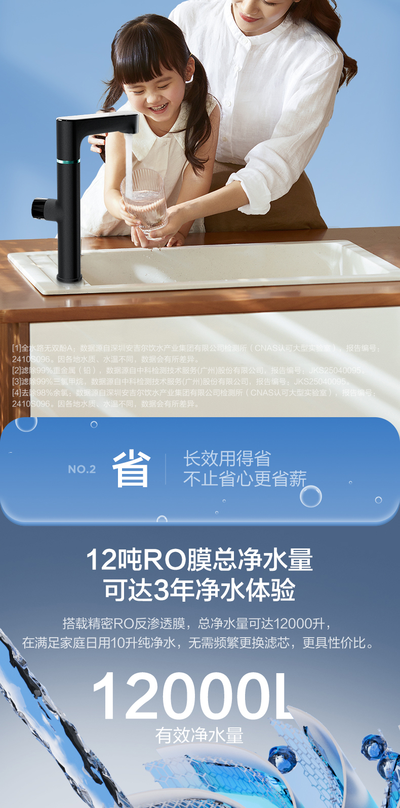 安吉尔加热净水器玉龙Ultra1200G厨下直饮机2200G温热水流速