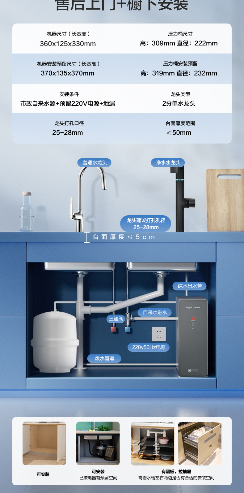 安吉尔魔方Mini Pro家用900G前置厨下直饮机