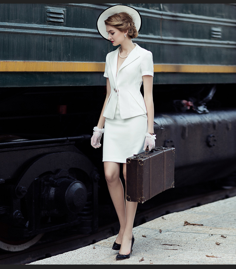 IWY/欧美职业装工装套装时尚短袖西装套裙OL气质女装正装工作服CS0331