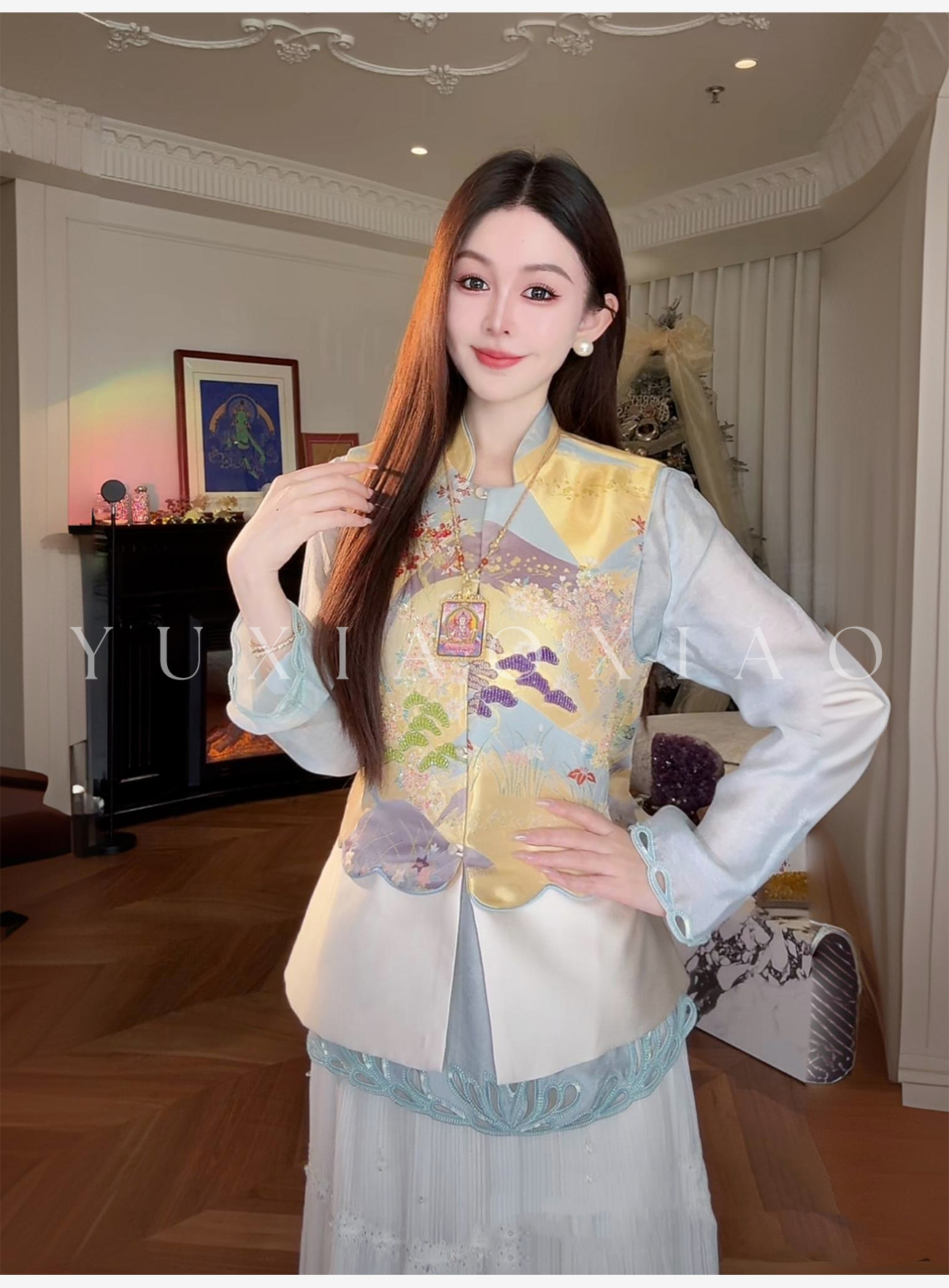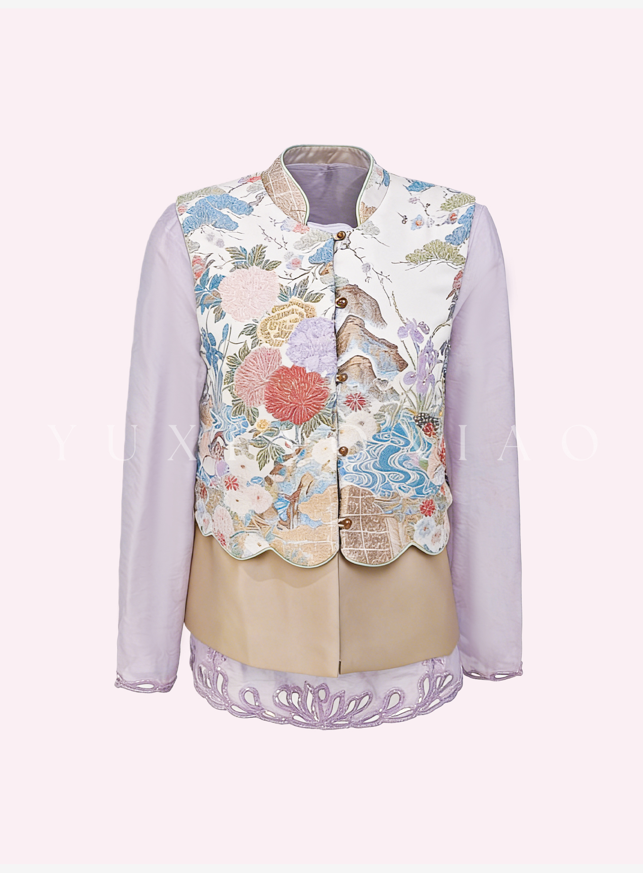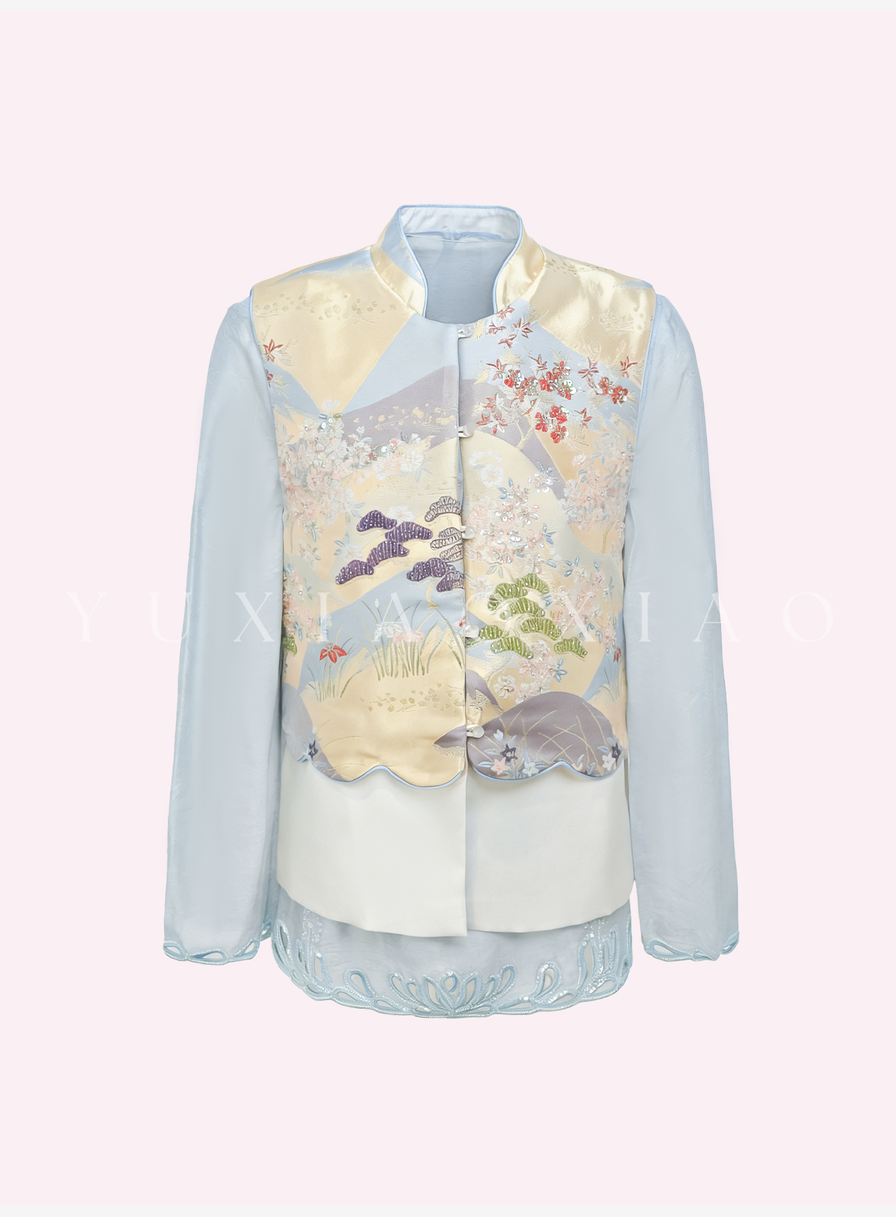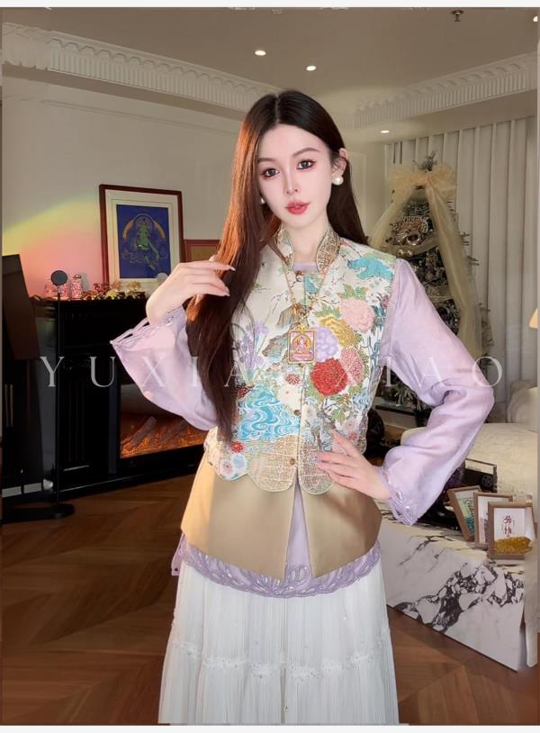 余潇潇【瑶台仙池】端庄气韵莱赛尔天丝山水印花图案国风马甲&衬衫