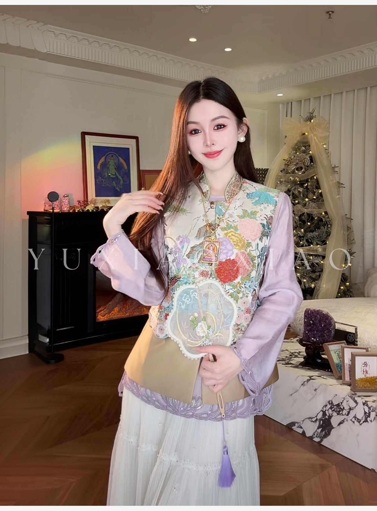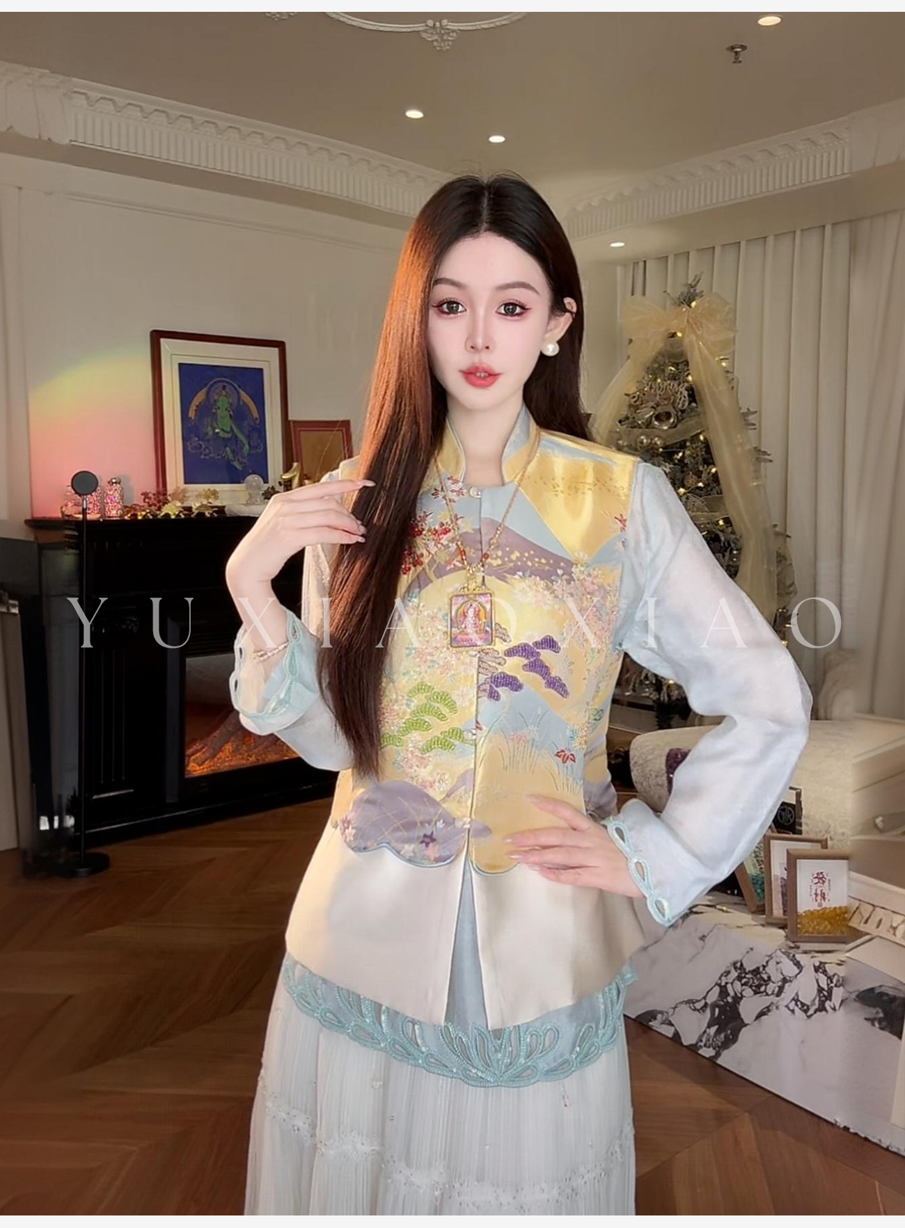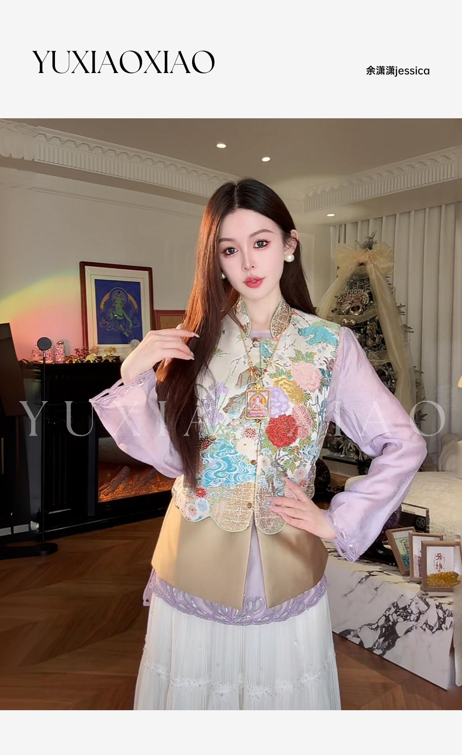 余潇潇【瑶台仙池】端庄气韵莱赛尔天丝山水印花图案国风马甲&衬衫