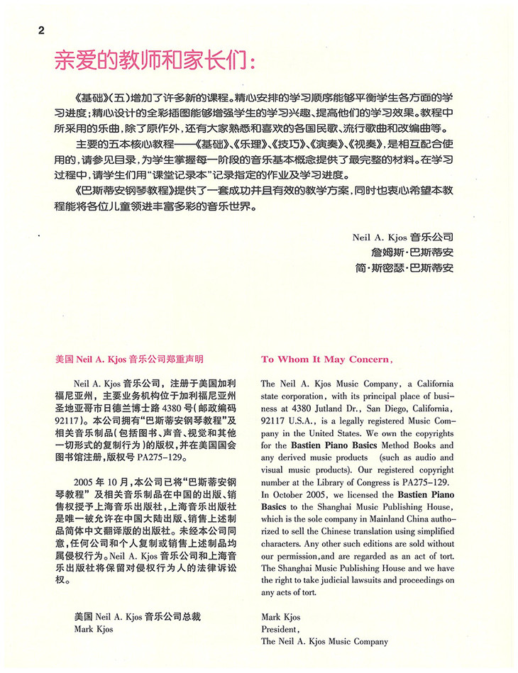 《巴斯蒂安钢琴教程》是根据儿童生理、心理特征编写的一套最易学习、最具趣味性,并附有引导性详解的钢琴基础教程。它倡导快乐学习的理念,能够让学生快速、轻松地掌握弹奏、伴奏、轻松地掌握弹奏、伴奏、弹唱的技巧,增加学习自信心,引发学习动机,满足成就感。因此,已被译成多国文字版本,成为世界各国儿童普遍欢迎的钢琴教材。