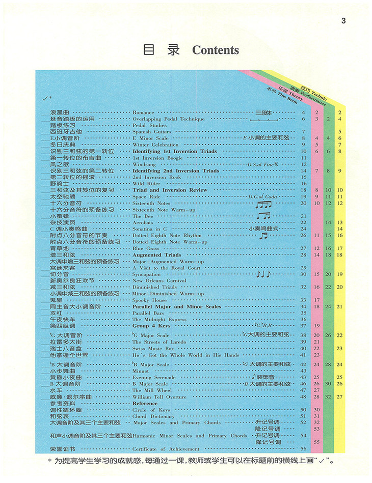 《技巧》包括许多有趣而又具有效果的练习,帮助提高手指弹奏的协调能力与灵活性,可作为弹奏乐曲之前的预备练习。
