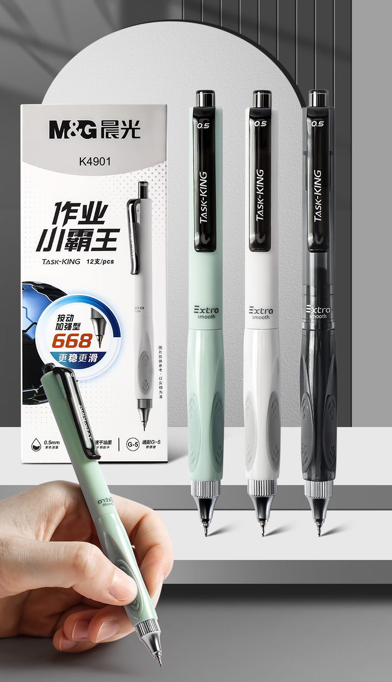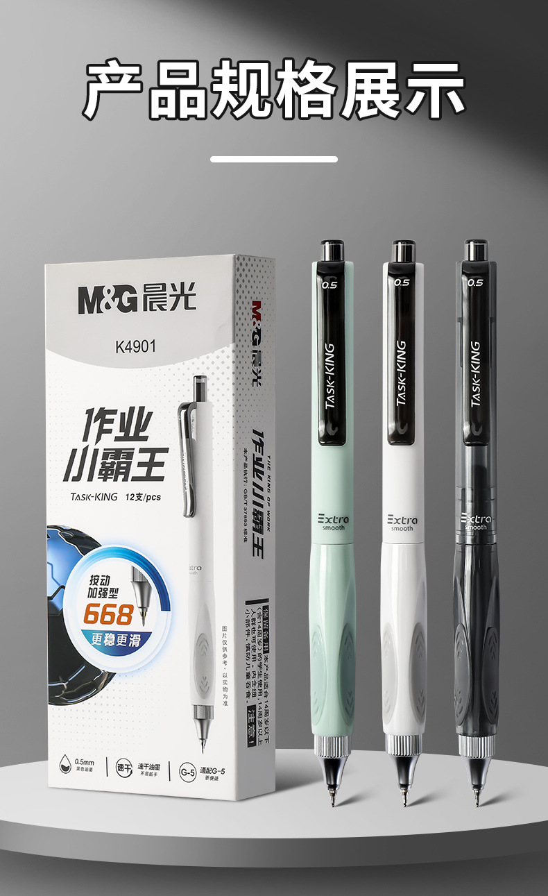 【三角正姿笔握❗养成正确书写习惯】晨光K4901按动中性笔作业小霸王ST笔尖低重心0.5速干黑学生刷题笔。rg