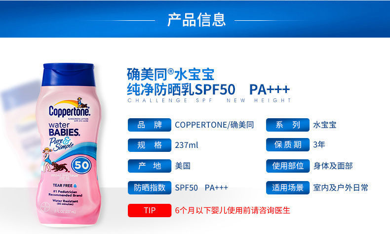 【爆款超低价预售 急单慎拍】确美同水宝宝纯净成人儿童防晒霜乳SPF50+ 237ml 防晒防水防汗 到22年7月