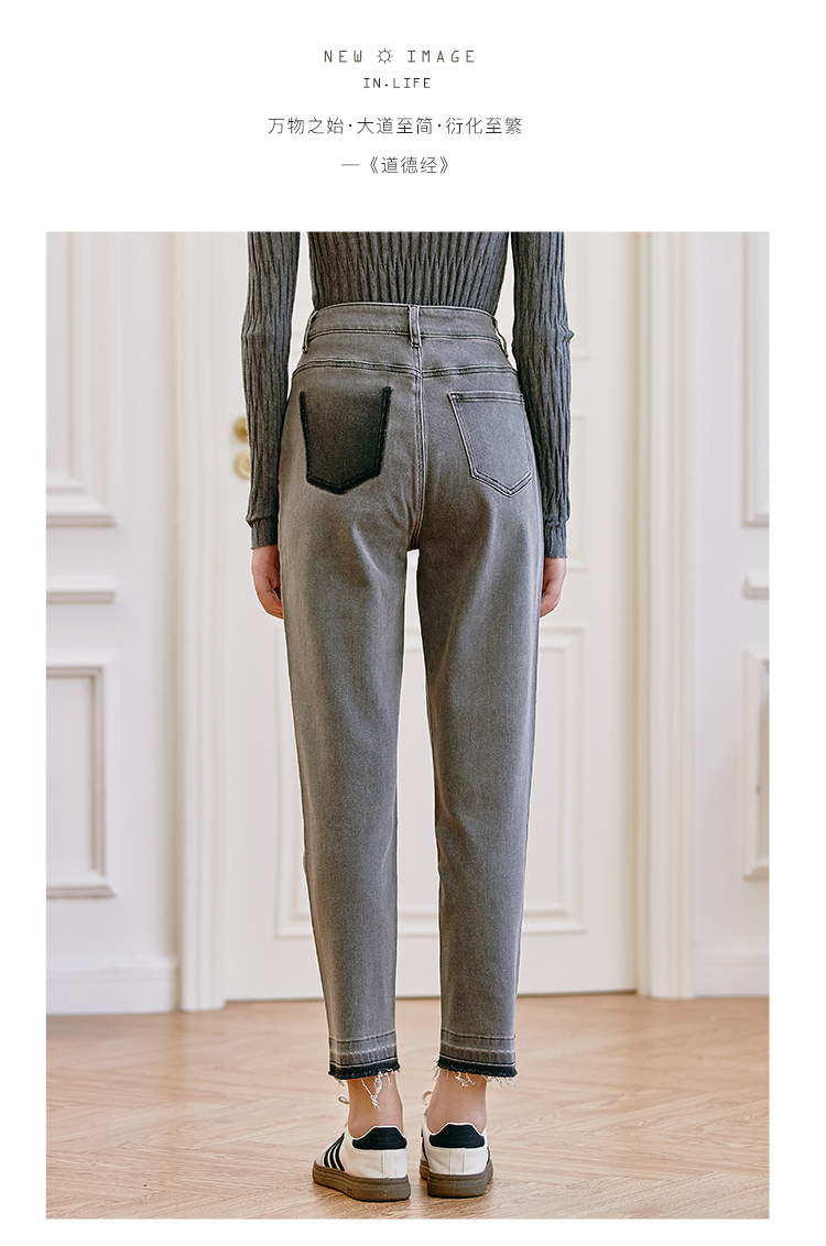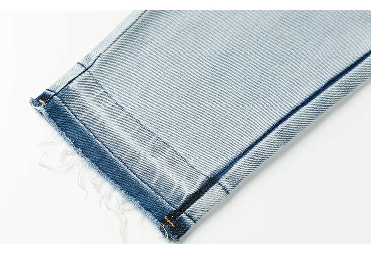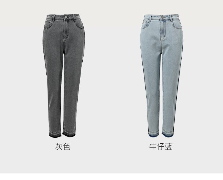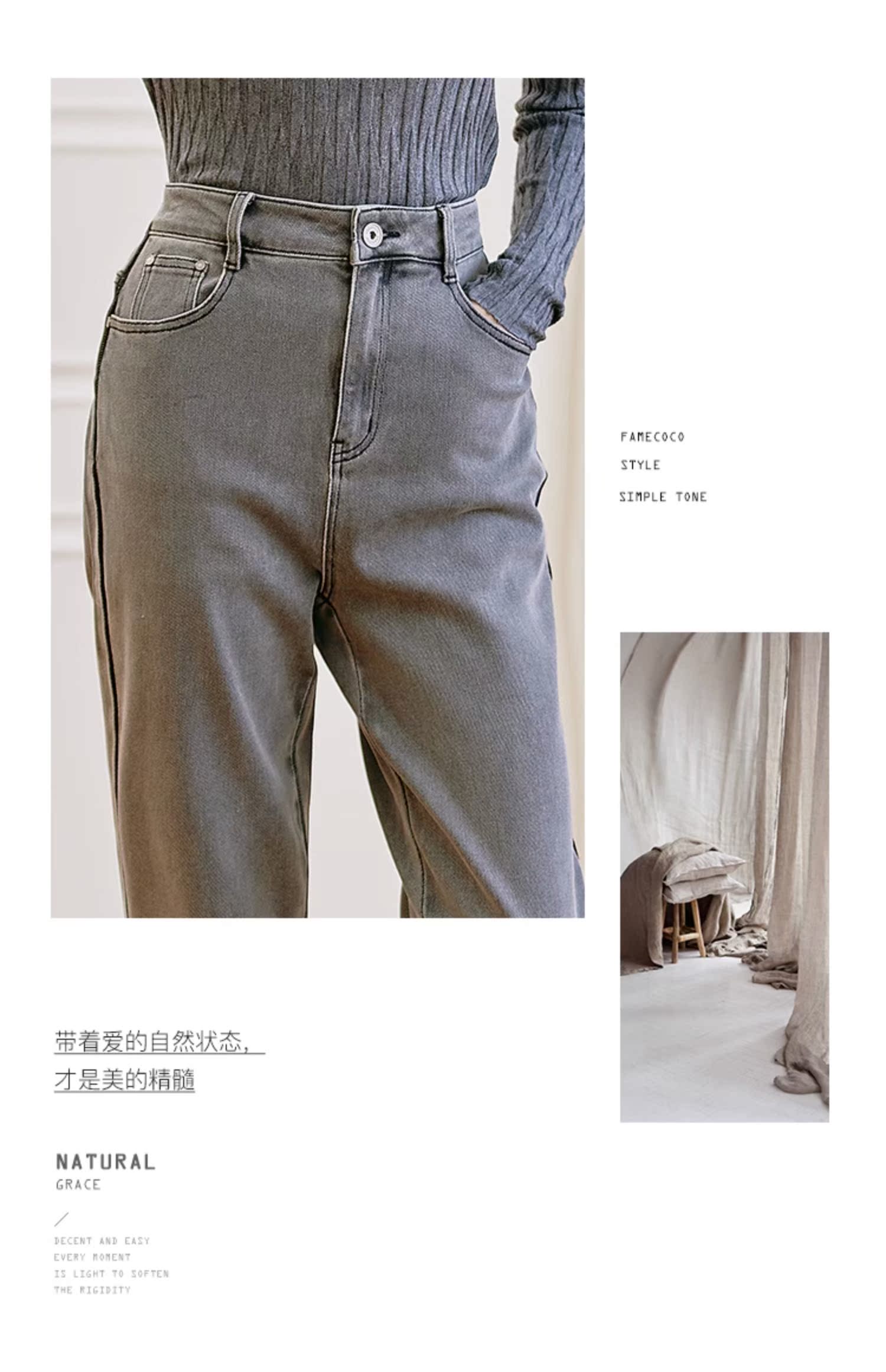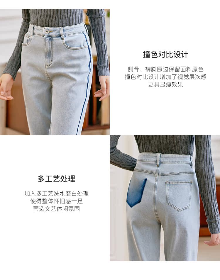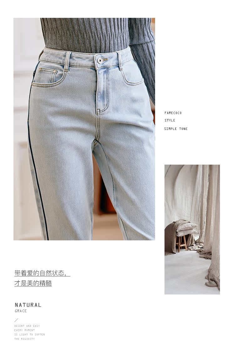Famecoco范可儿原创水洗做旧浅色牛仔裤女款秋季新品撞色长裤F225GA017