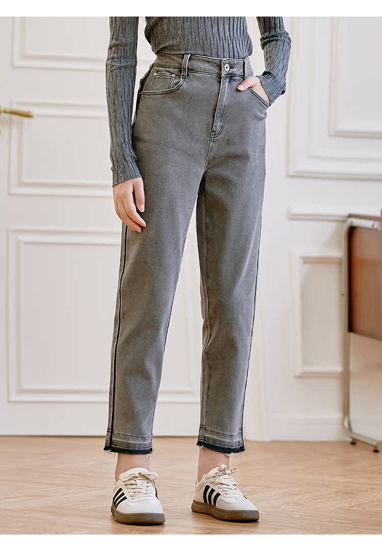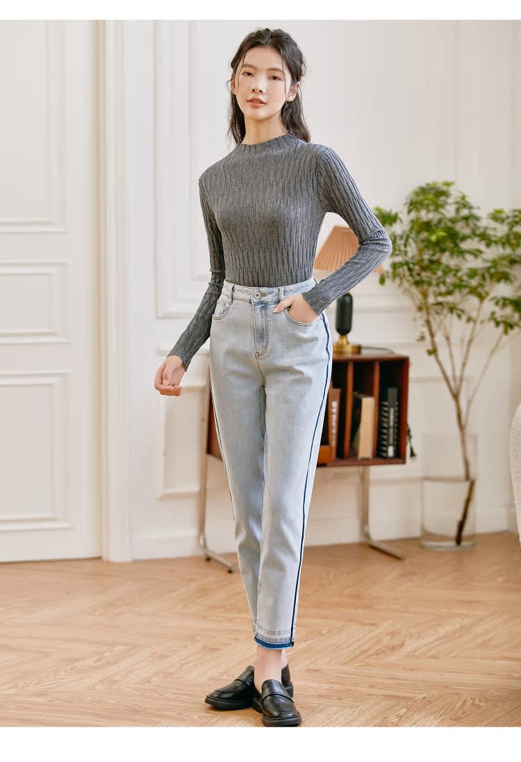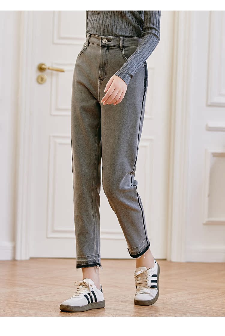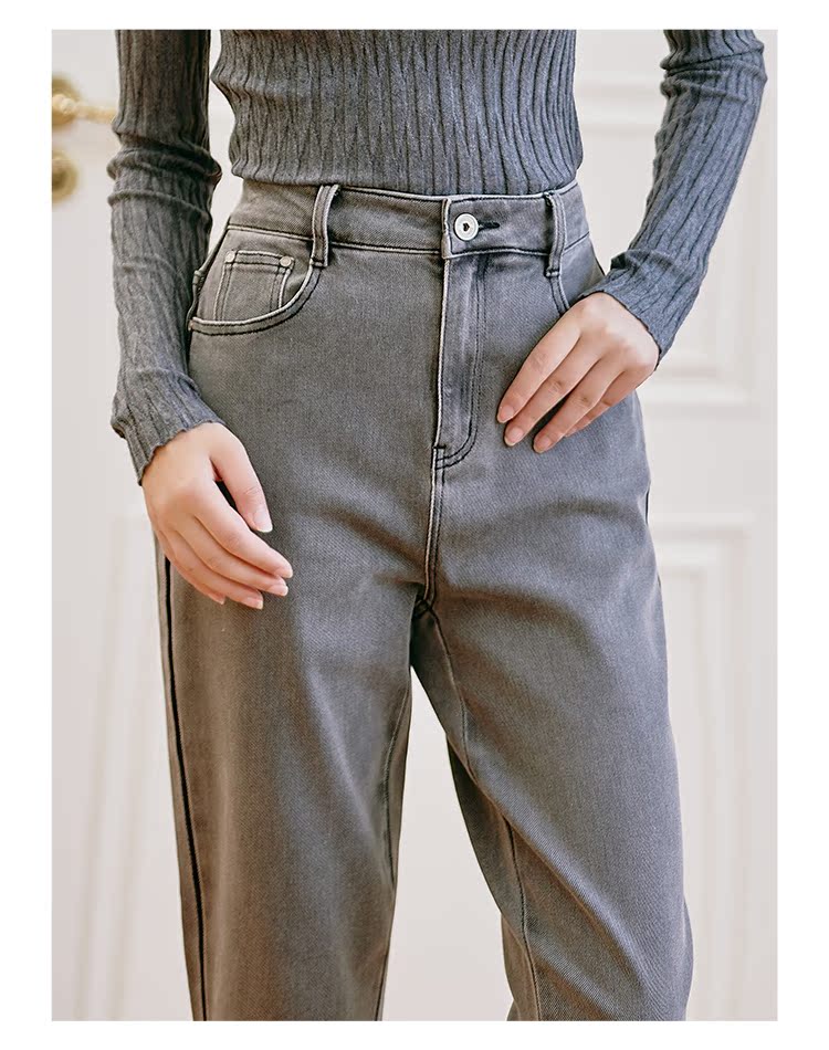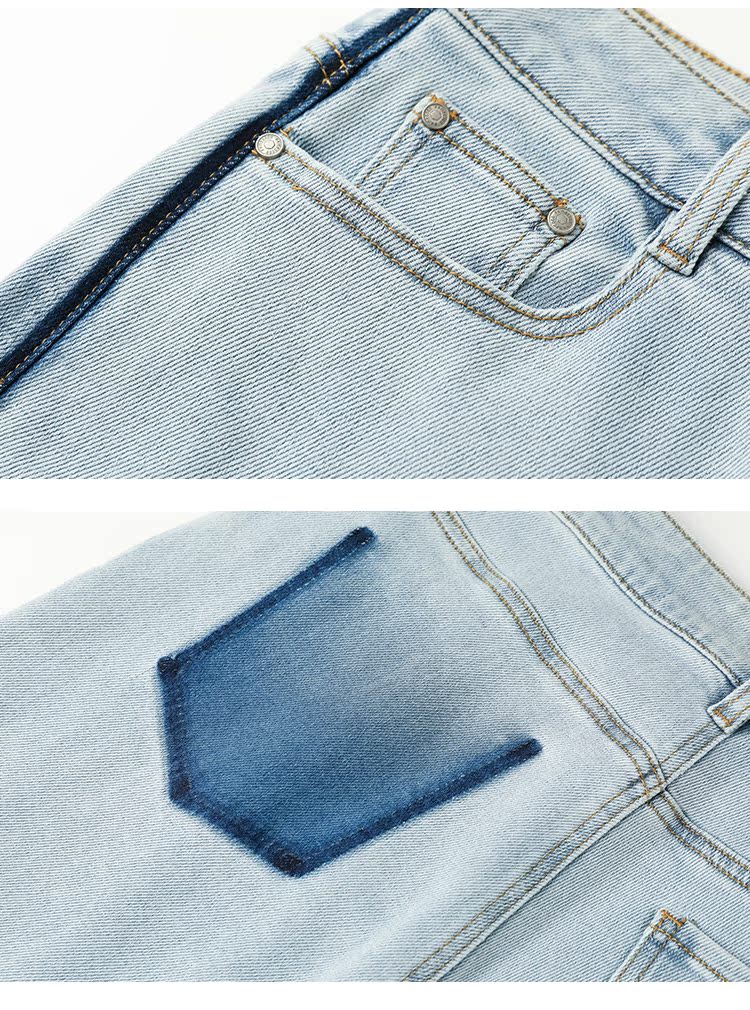 Famecoco范可儿原创水洗做旧浅色牛仔裤女款秋季新品撞色长裤F225GA017