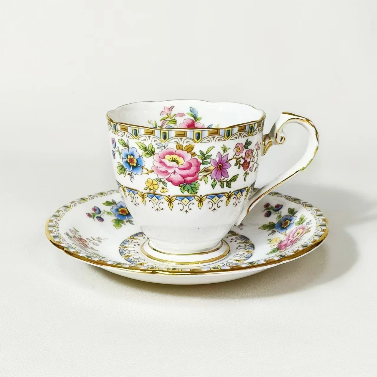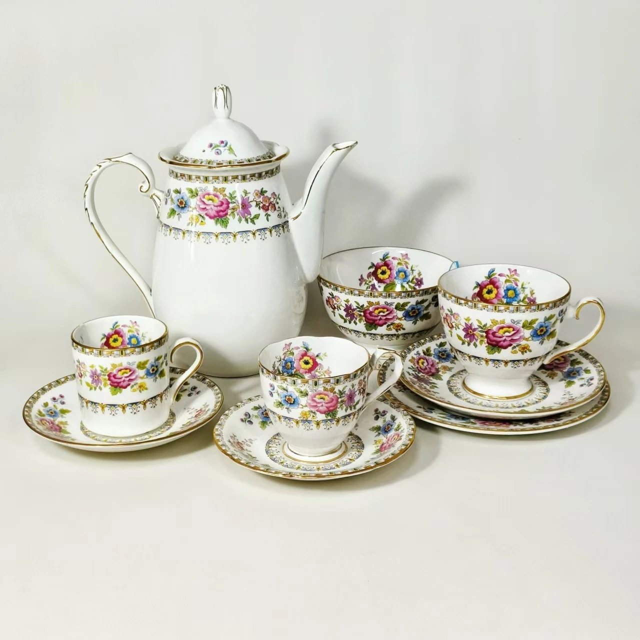 英国皇家格拉夫顿东方花朵Malvern系列下午茶套组,富丽堂皇的宫廷风边沿设计让金边闪烁光芒,富贵牡丹在美好的季节迎风盛开,百花簇拥着花中之后,场景雍容华贵,美不胜收。