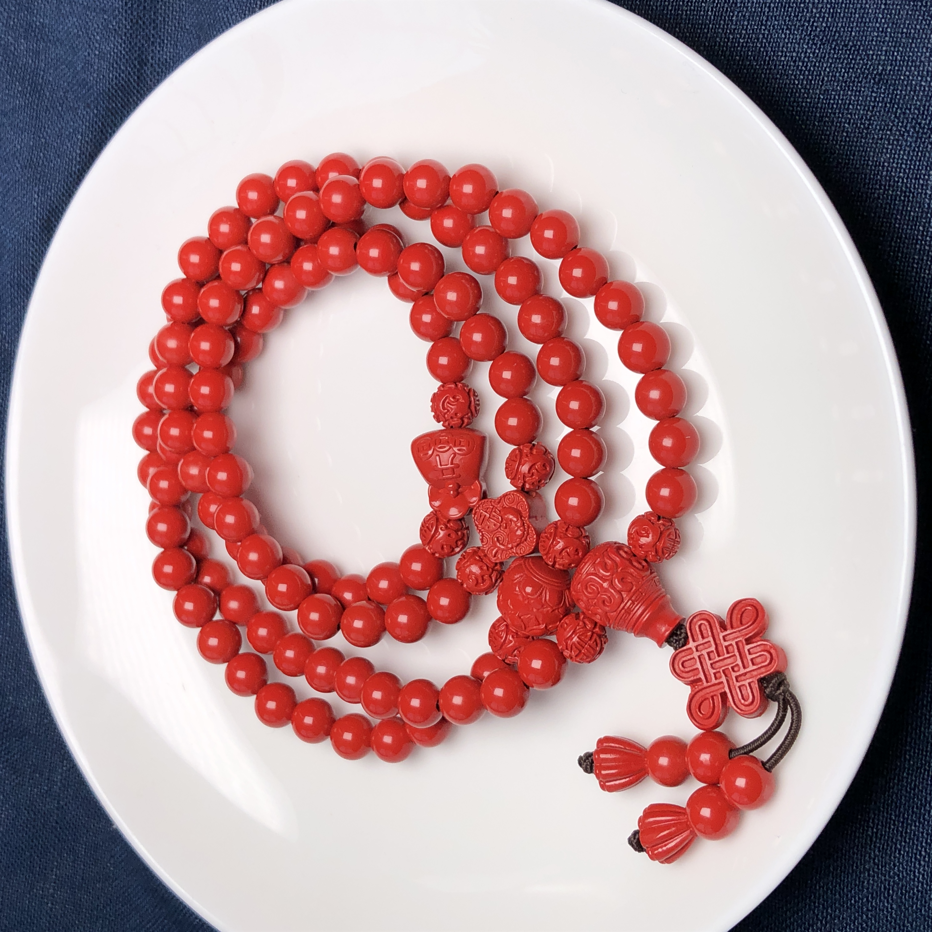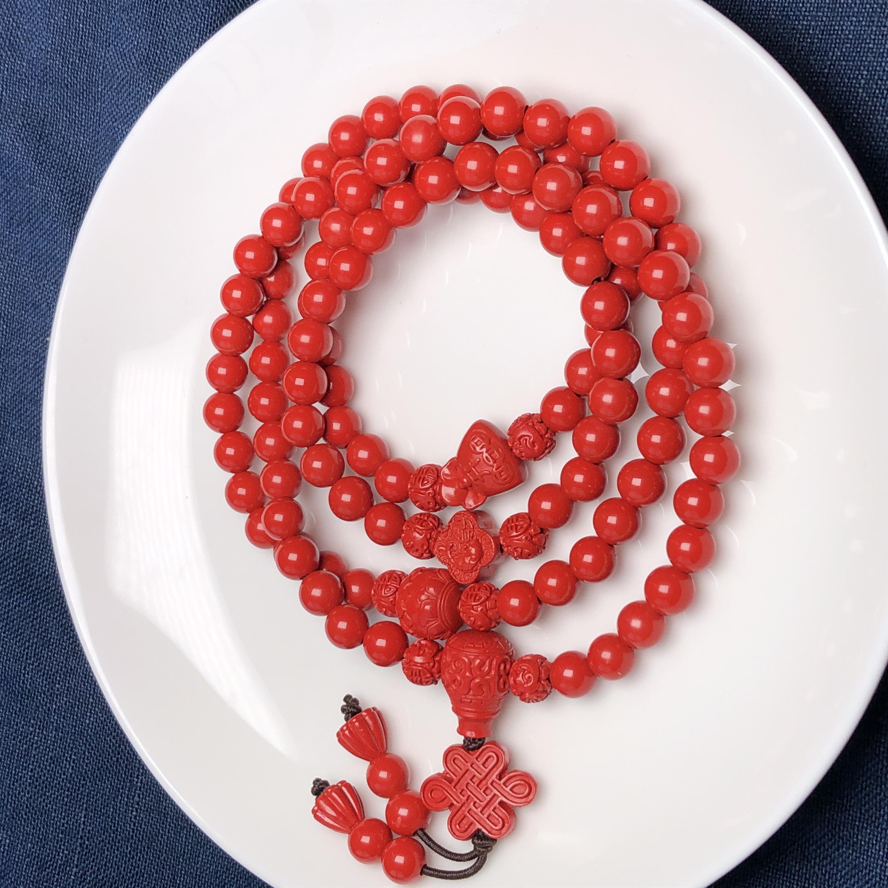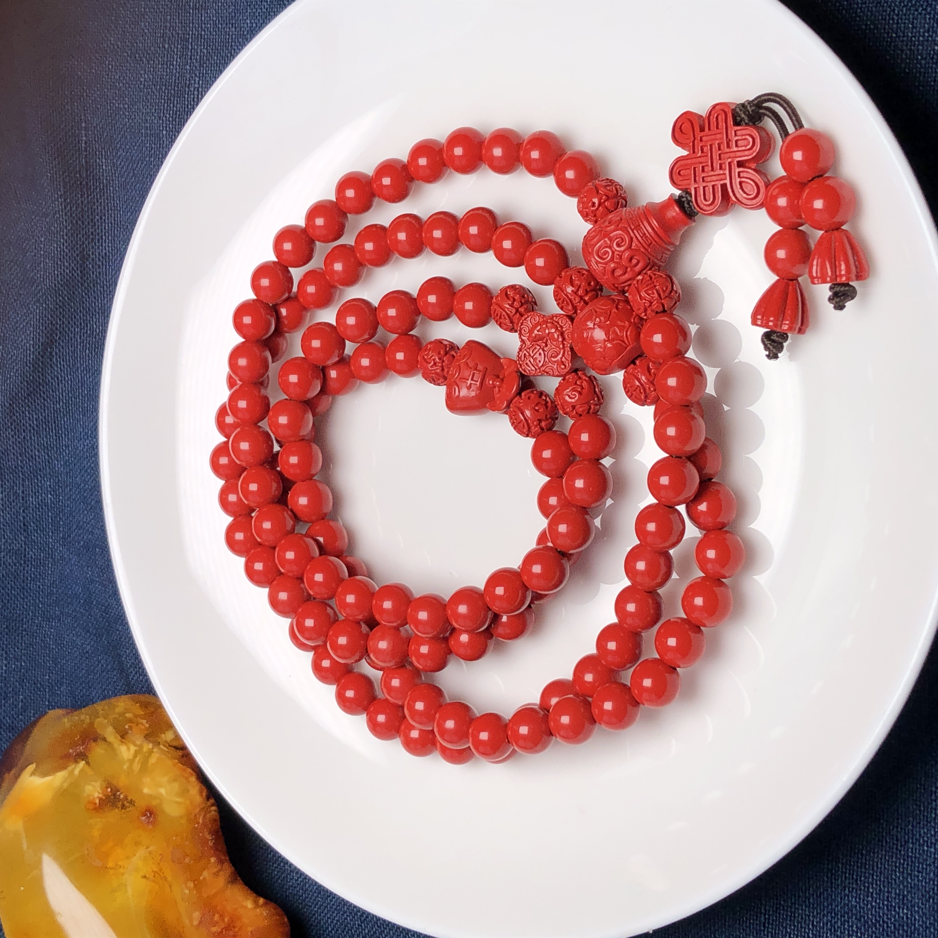 关于朱砂工艺:店里所有朱砂均为天然朱砂粉、朱砂晶体颗粒聚合而成。因朱砂产品不属于宝石级别,受人工成本、天然材质、制作工艺的影响,达不到玉器的精细程度,部分会带有天然原石里的小黑点、气泡孔,介意者慎拍~