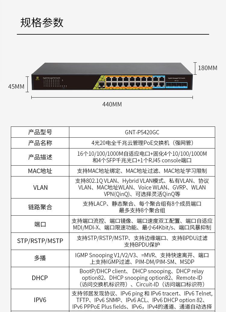 4光20电二层全千兆POE交换机 强网管(Link)P5420GC