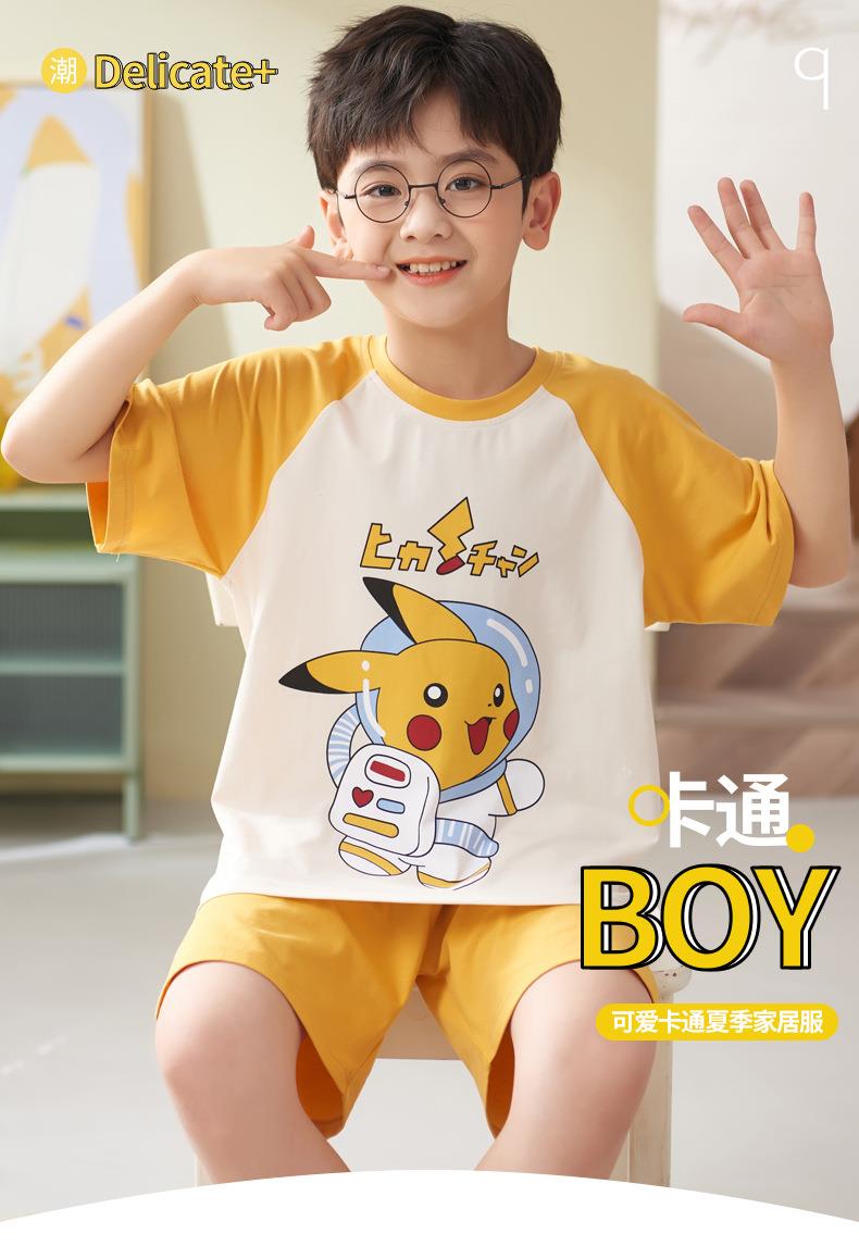 莫代尔儿童睡衣夏季薄款男童家居服套装大童夏天小男孩短袖空调服