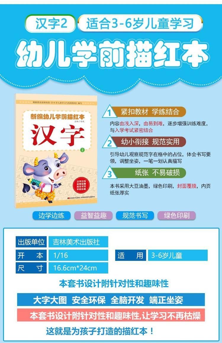 新编幼儿学前描红本汉字2 启蒙3-6岁儿童学前早教书籍幼儿园汉字2描红练习册 大唐