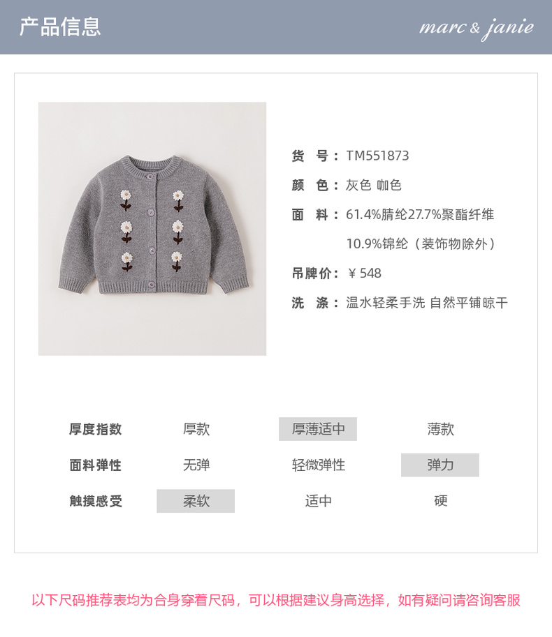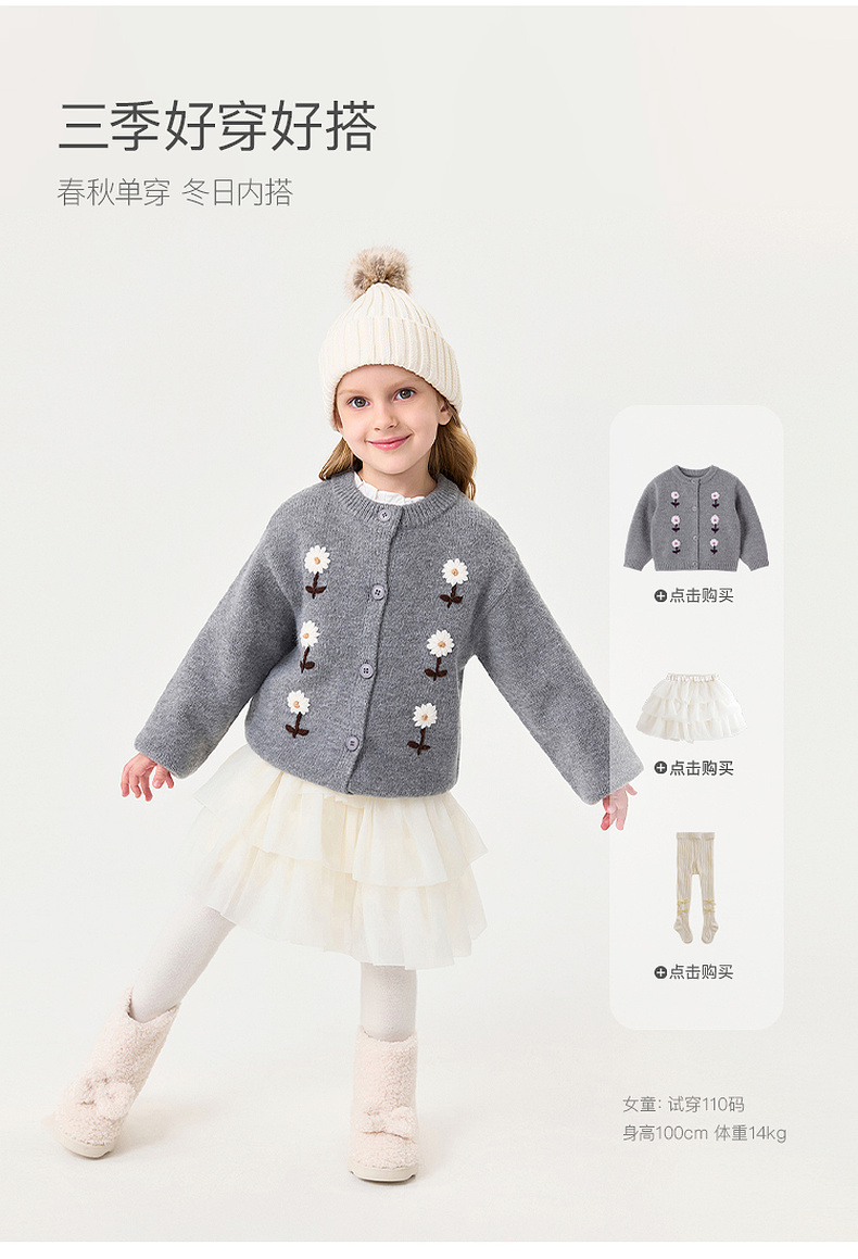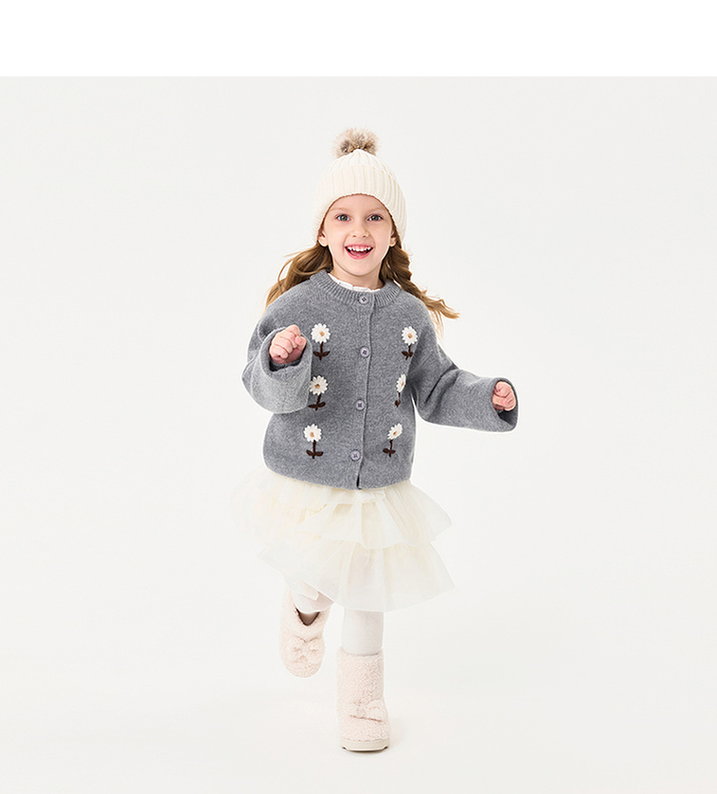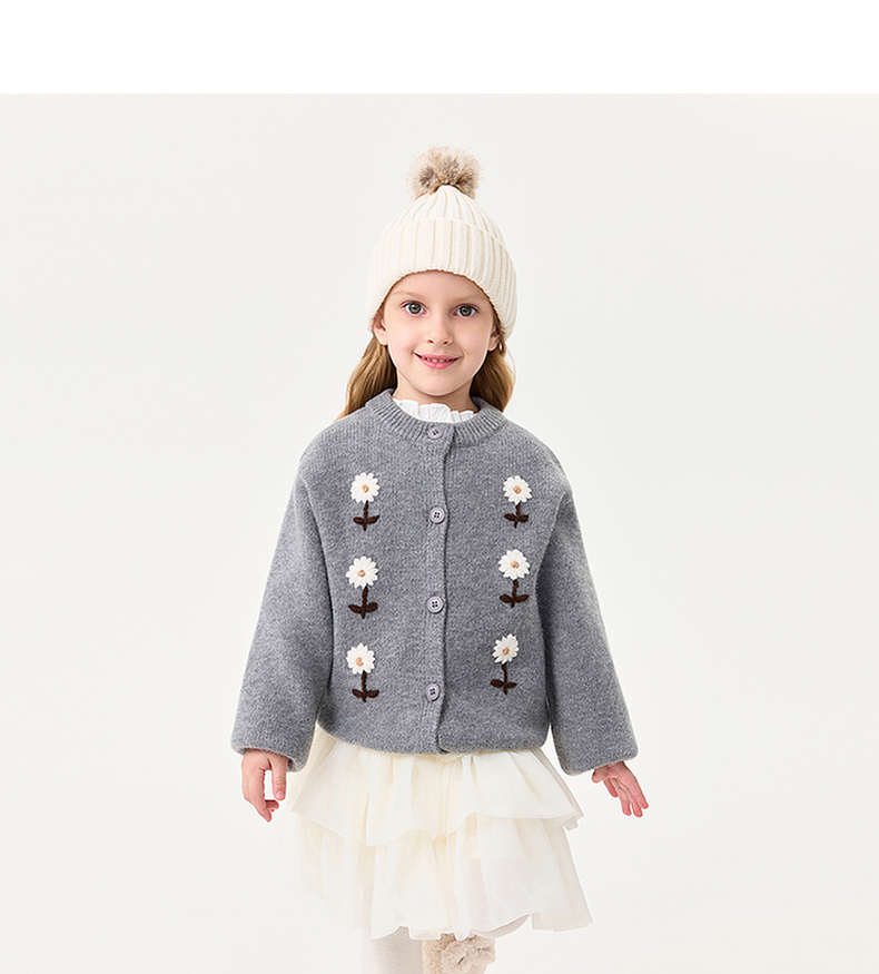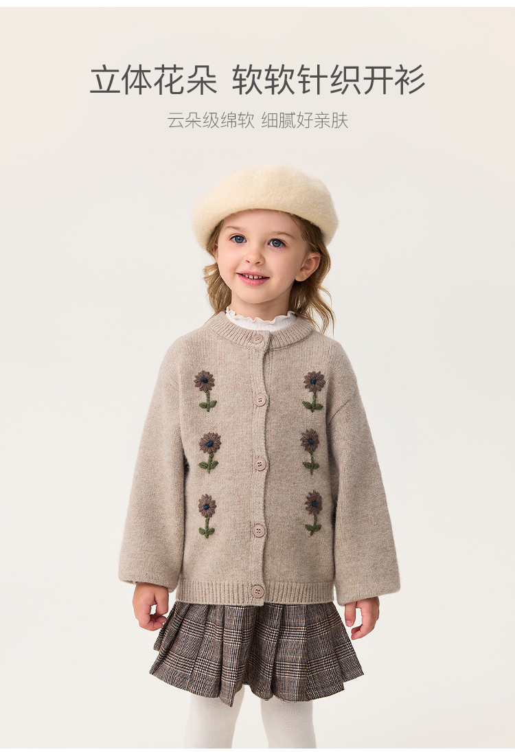 马克珍妮女童立体花朵软软针织开衫2025年秋冬新款551873