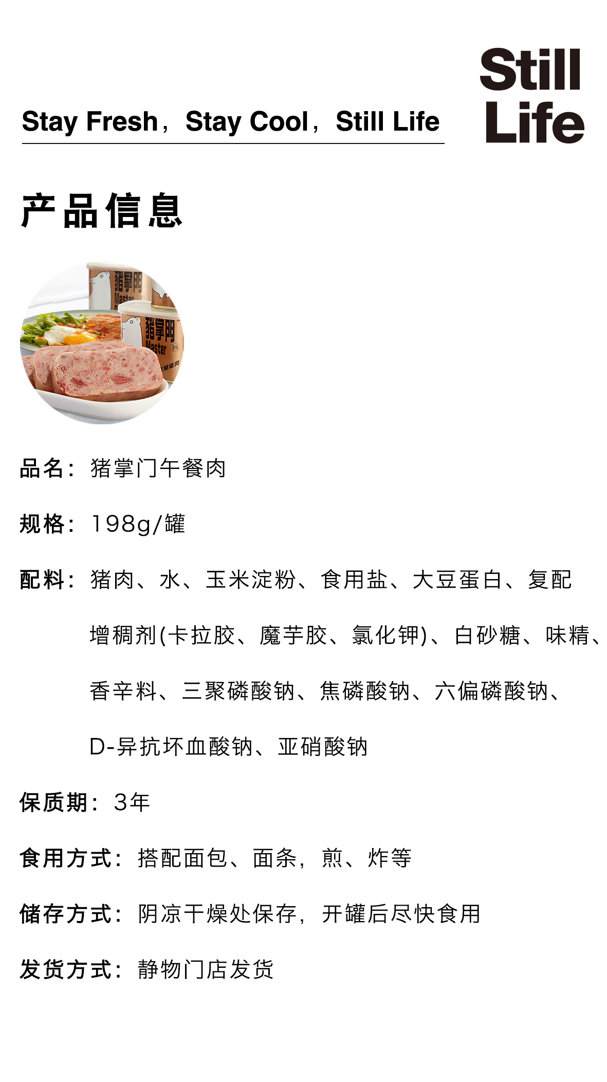 猪掌门午餐肉198g/罐