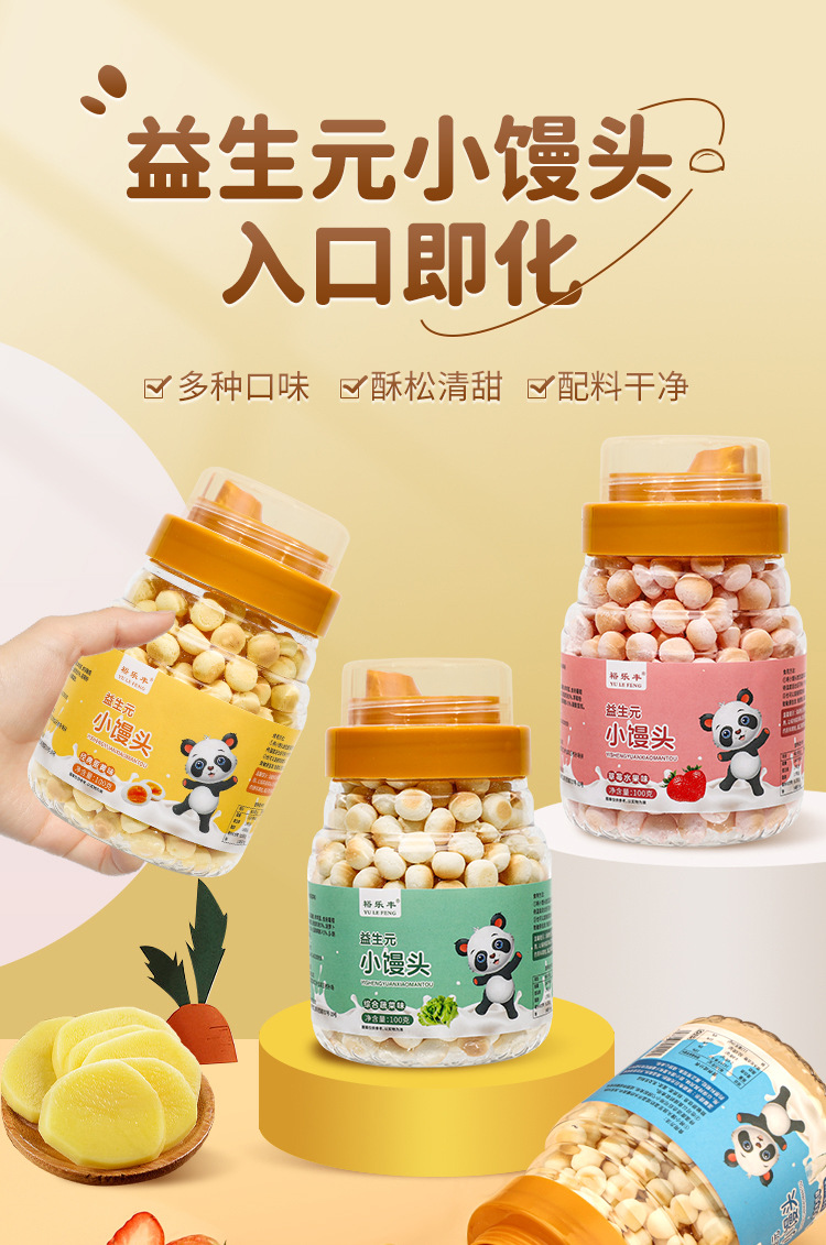 【宝宝超爱❗益生元小馒头】甄选品质原料制作,添加全脂乳粉和鲜鸡蛋,满口蛋奶香,儿童零食海藻糖小馒头果蔬小蛋酥100克/罐装L