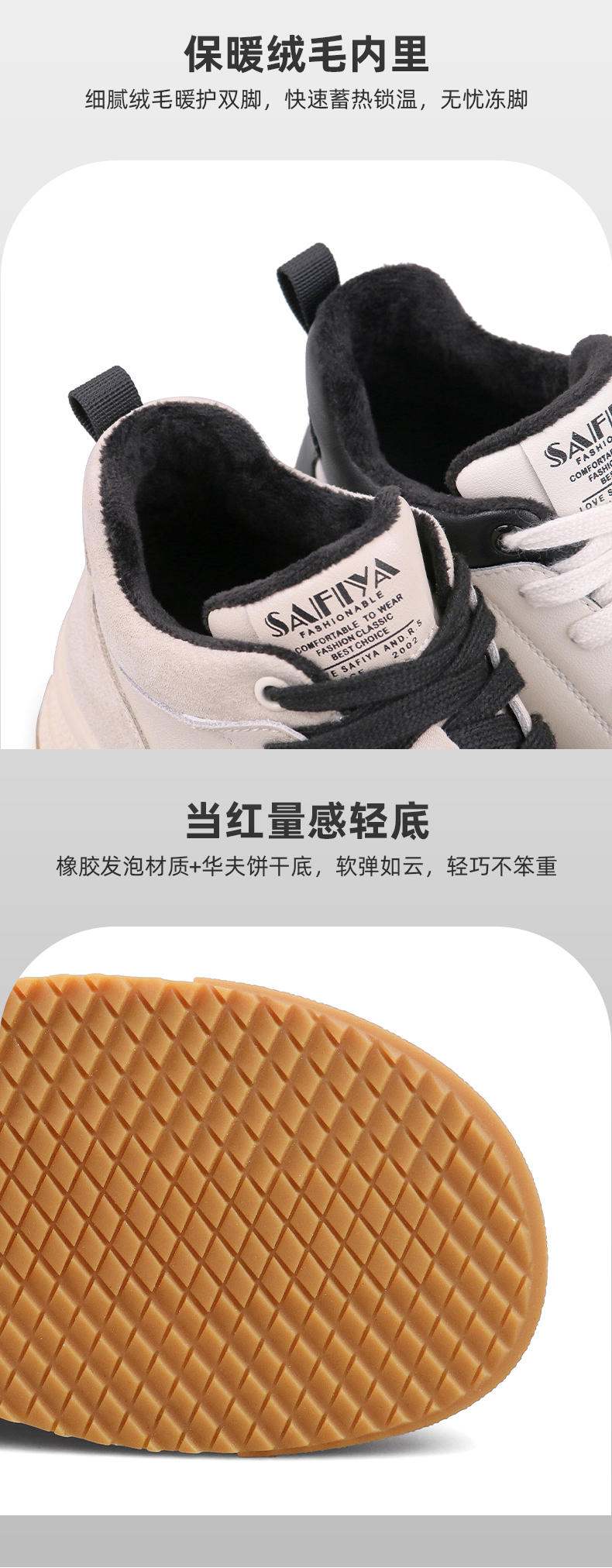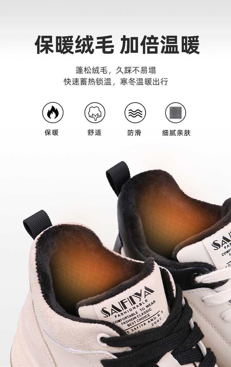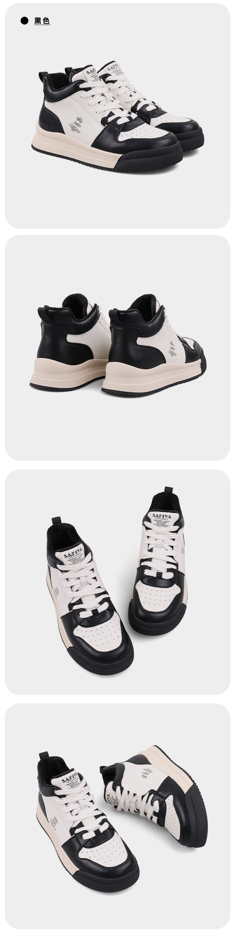 【双旦福利】Safiya/索菲娅 复古学院风2022冬季新款高帮系带拼色加绒板鞋 SF24112124