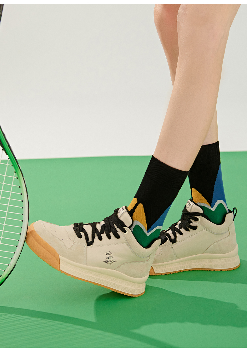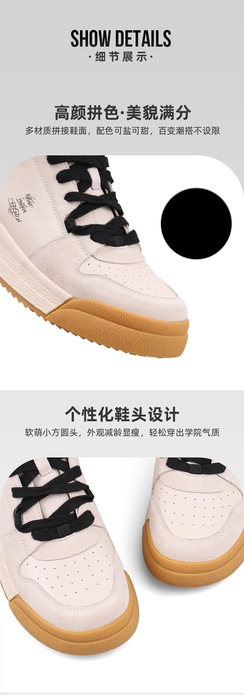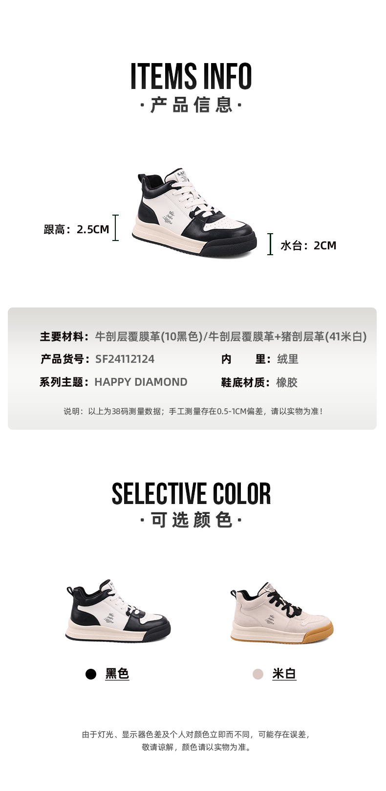 【双旦福利】Safiya/索菲娅 复古学院风2022冬季新款高帮系带拼色加绒板鞋 SF24112124