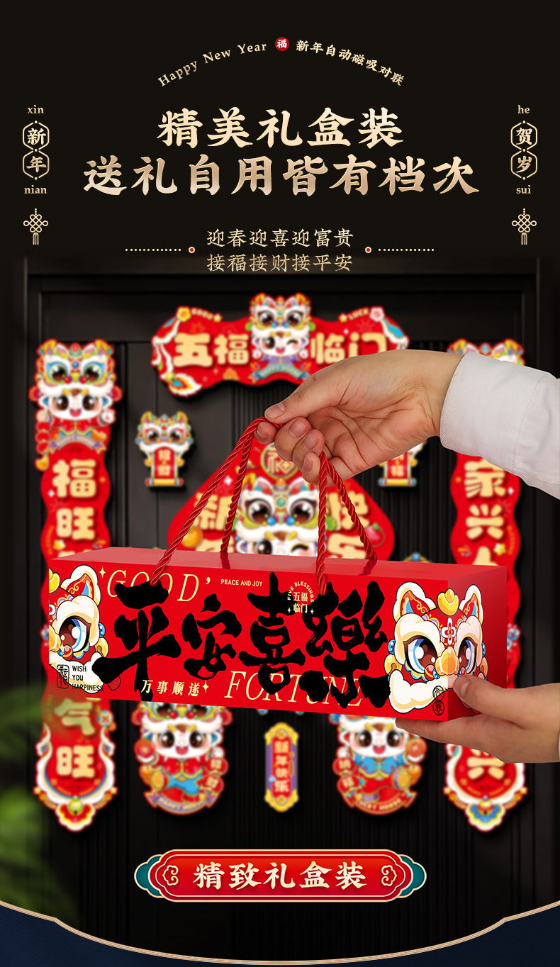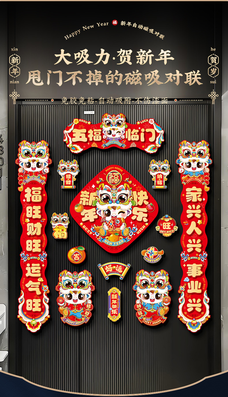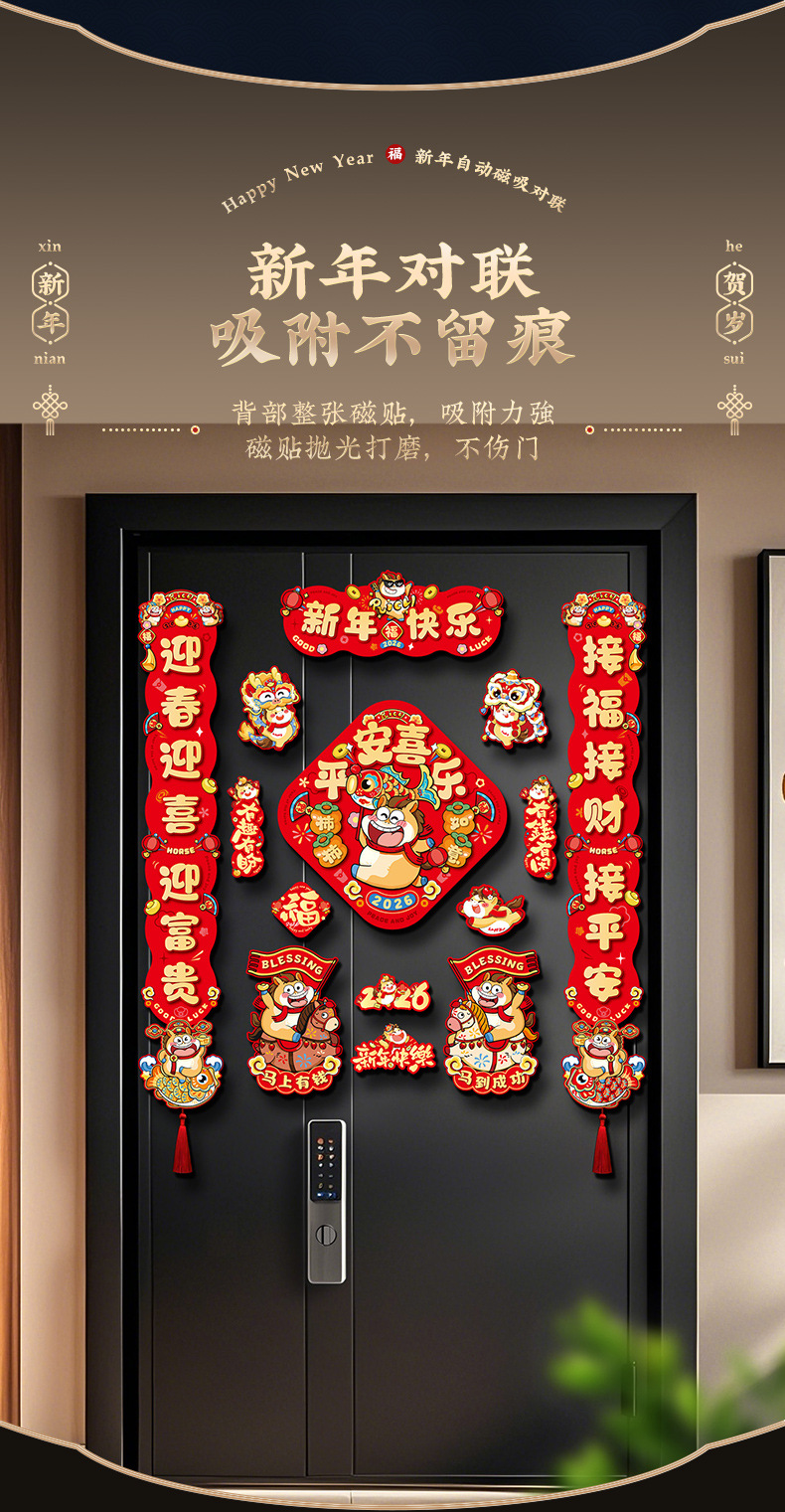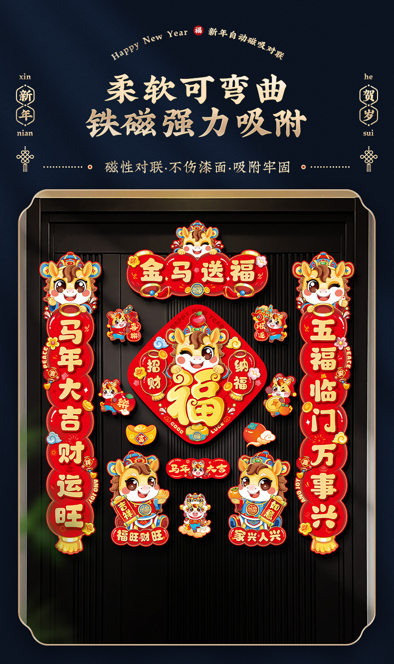 【赠送冰箱贴 礼盒装】2026 马年磁吸对联春联11件套礼盒装 磁吸不粘墙 春节入户福字门贴新年装饰年货摆件对联