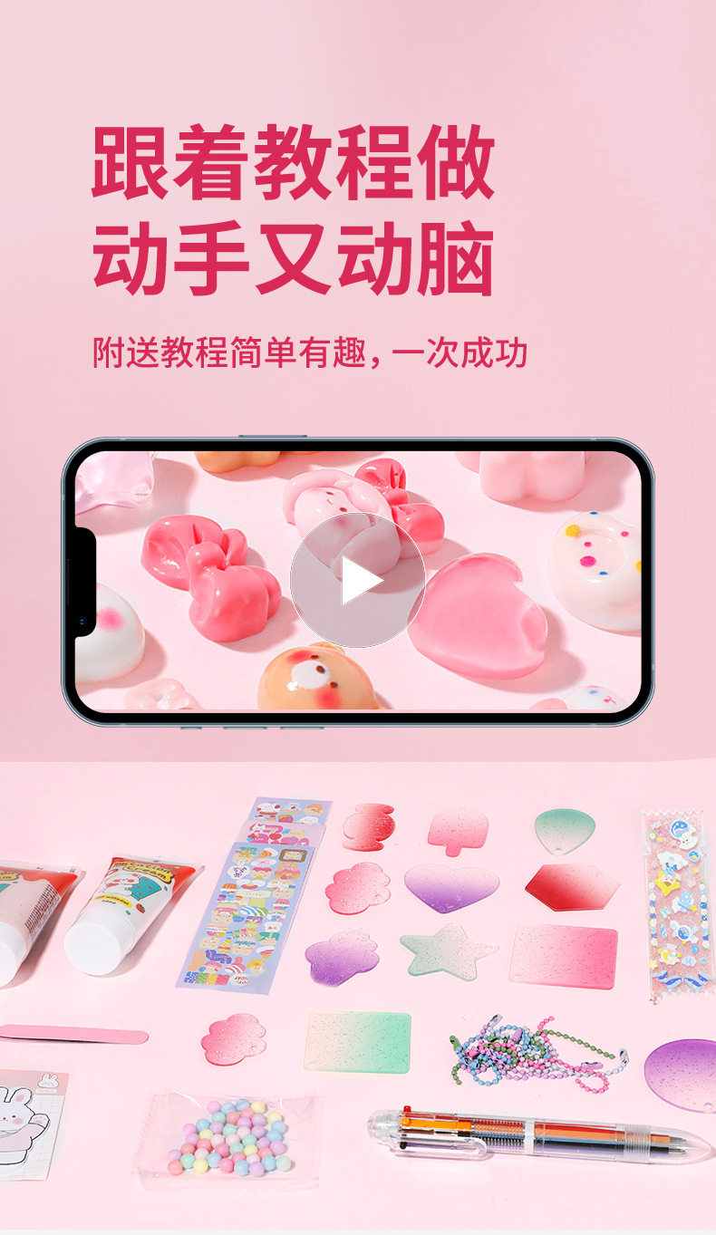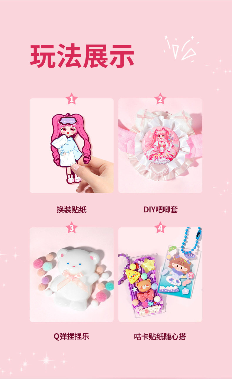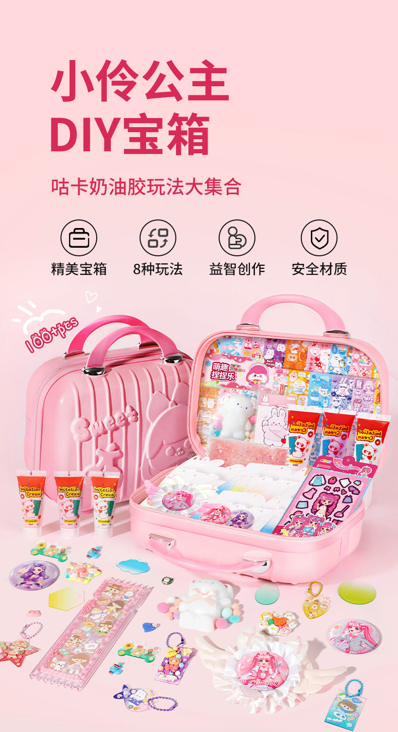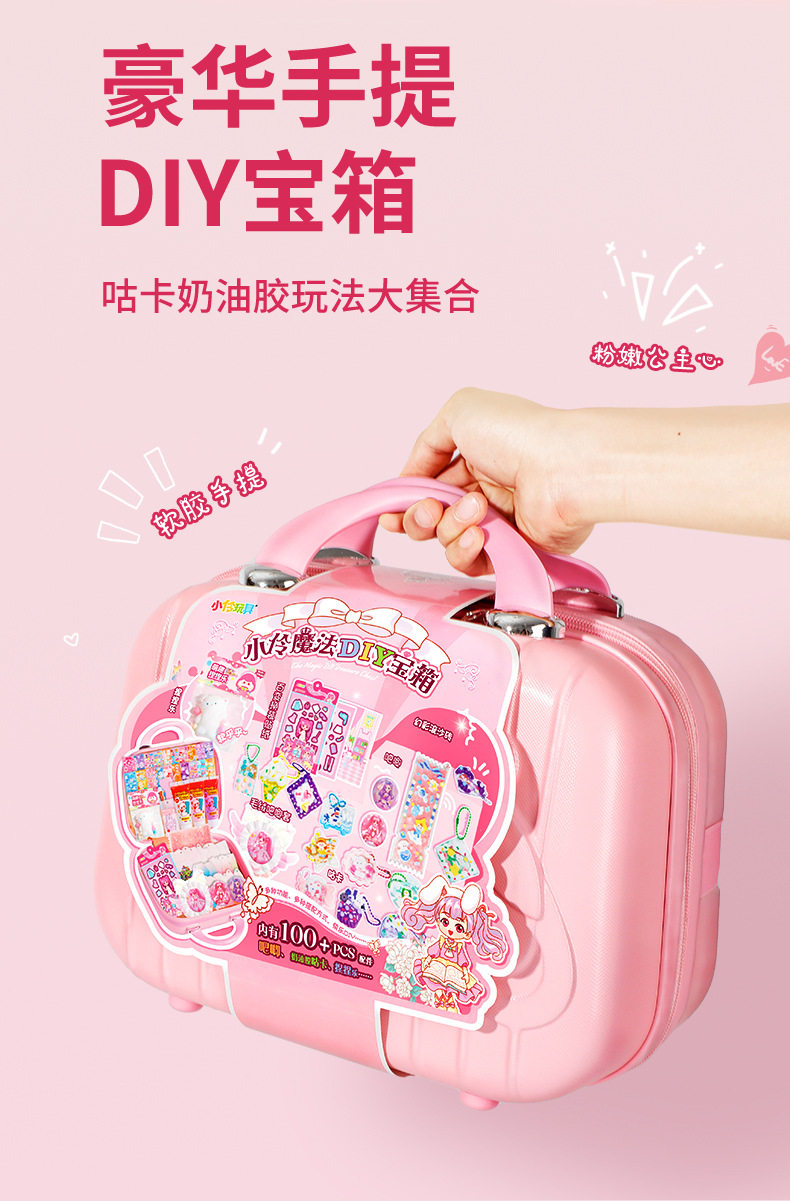赠教程【新年送礼DIY咕卡手工宝箱】小伶新品手工 DIY咕卡奶油胶/贴纸/捏捏乐/换装贴纸/百宝箱手提箱 女孩玩具礼物