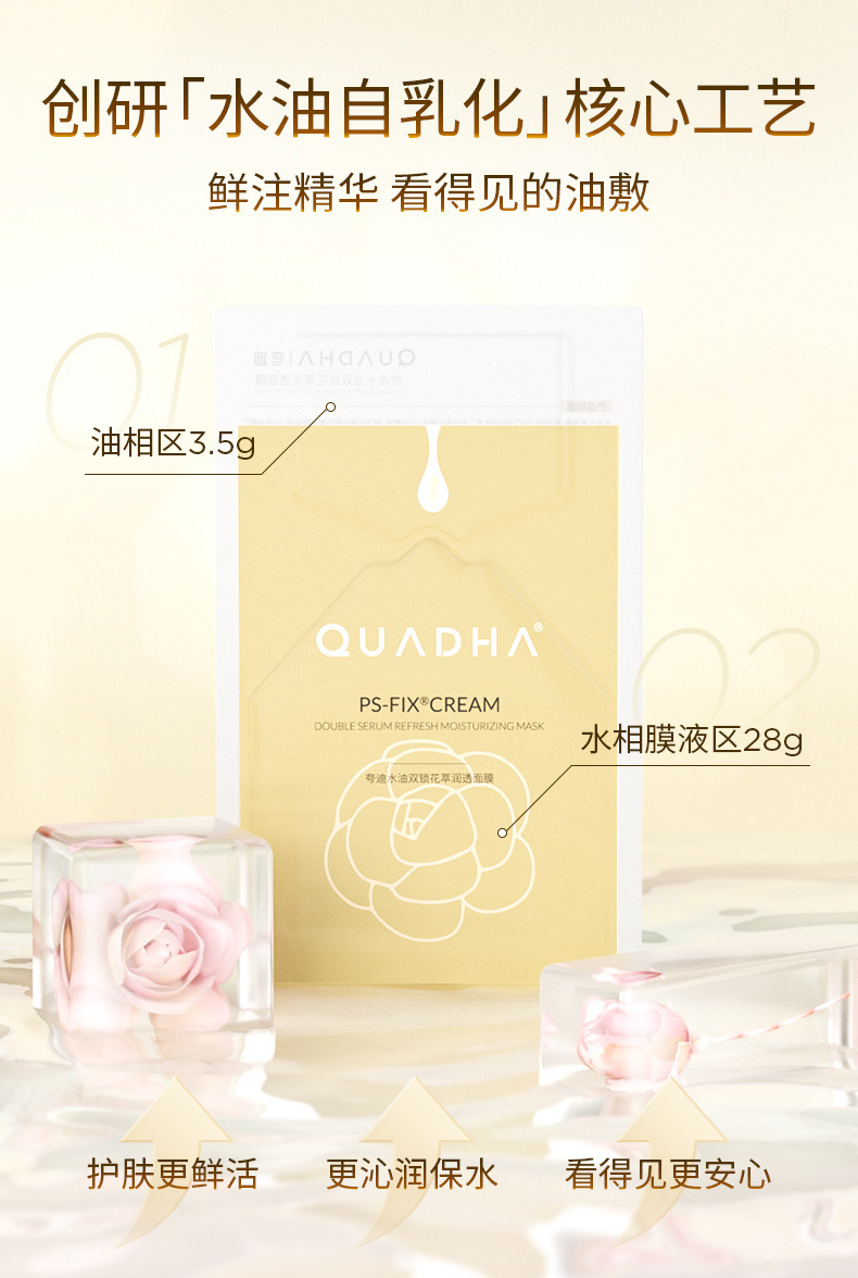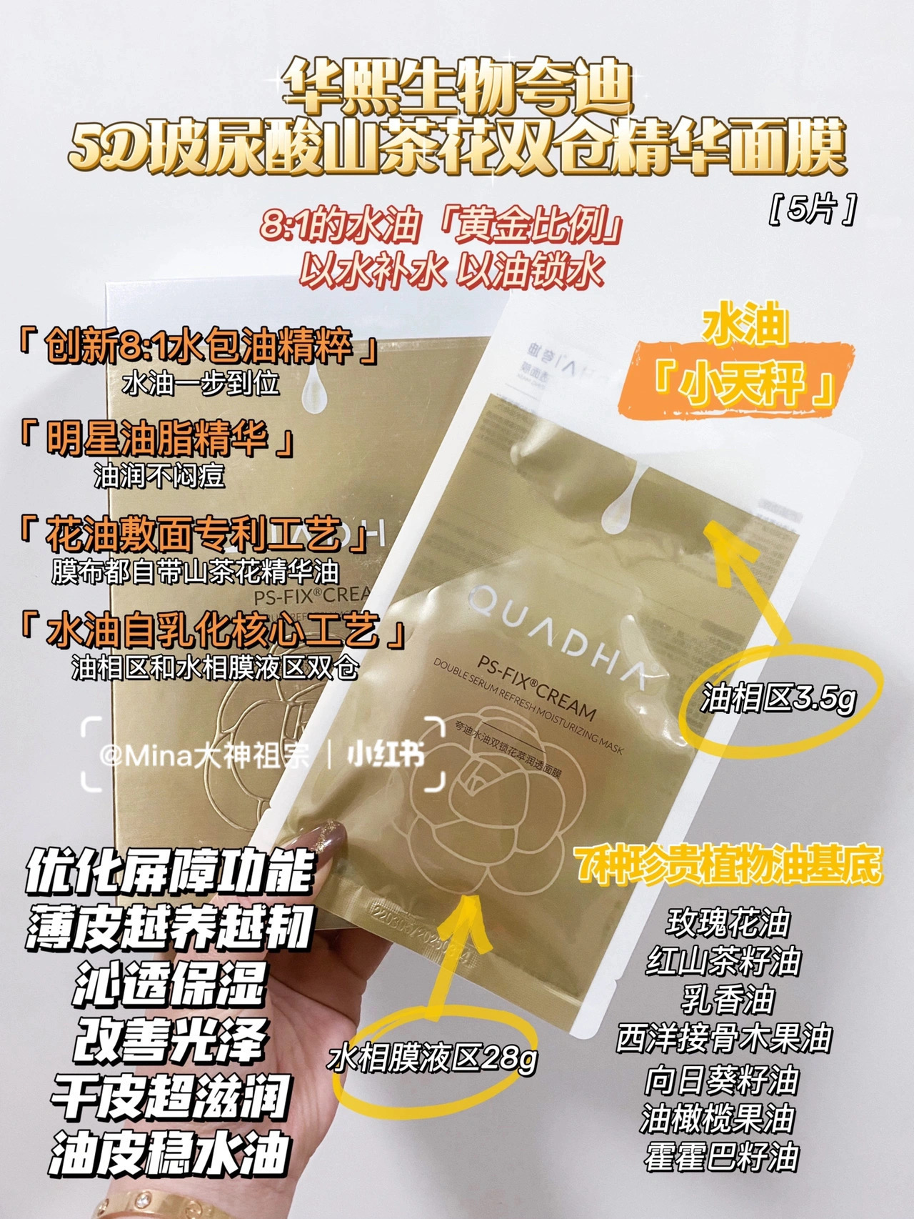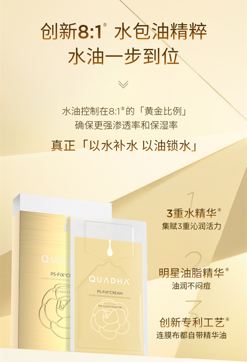 【品牌直发】夸迪5D玻尿酸山茶花双仓精华面膜 5片/盒 8:1水包油精粹平衡水油加强皮肤屏障