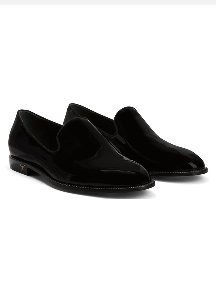 Giuseppe Zanotti 男士签名徽标漆皮乐福鞋 黑色 EU30028001