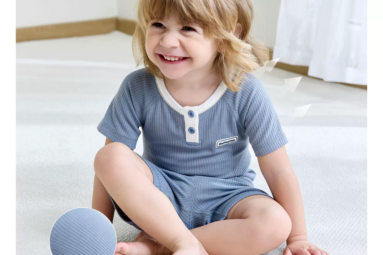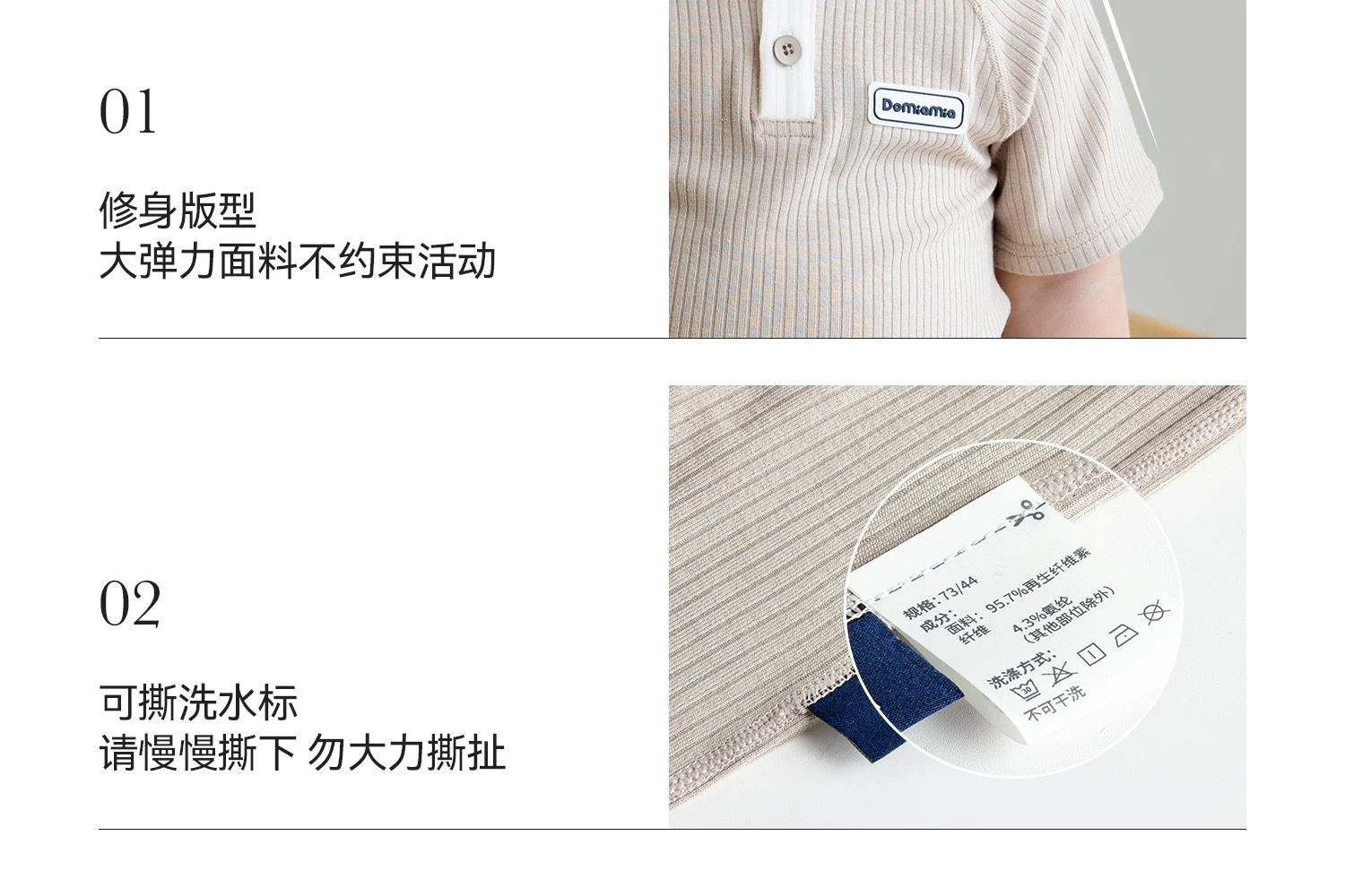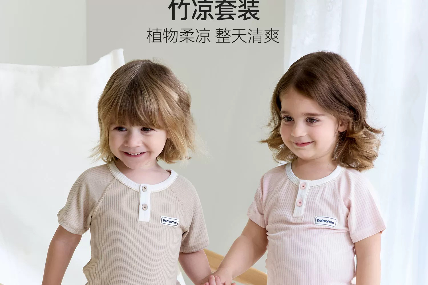 Domiamia 儿童针织短袖前中开套装家居服 竹纤维凉感宝宝短袖套装