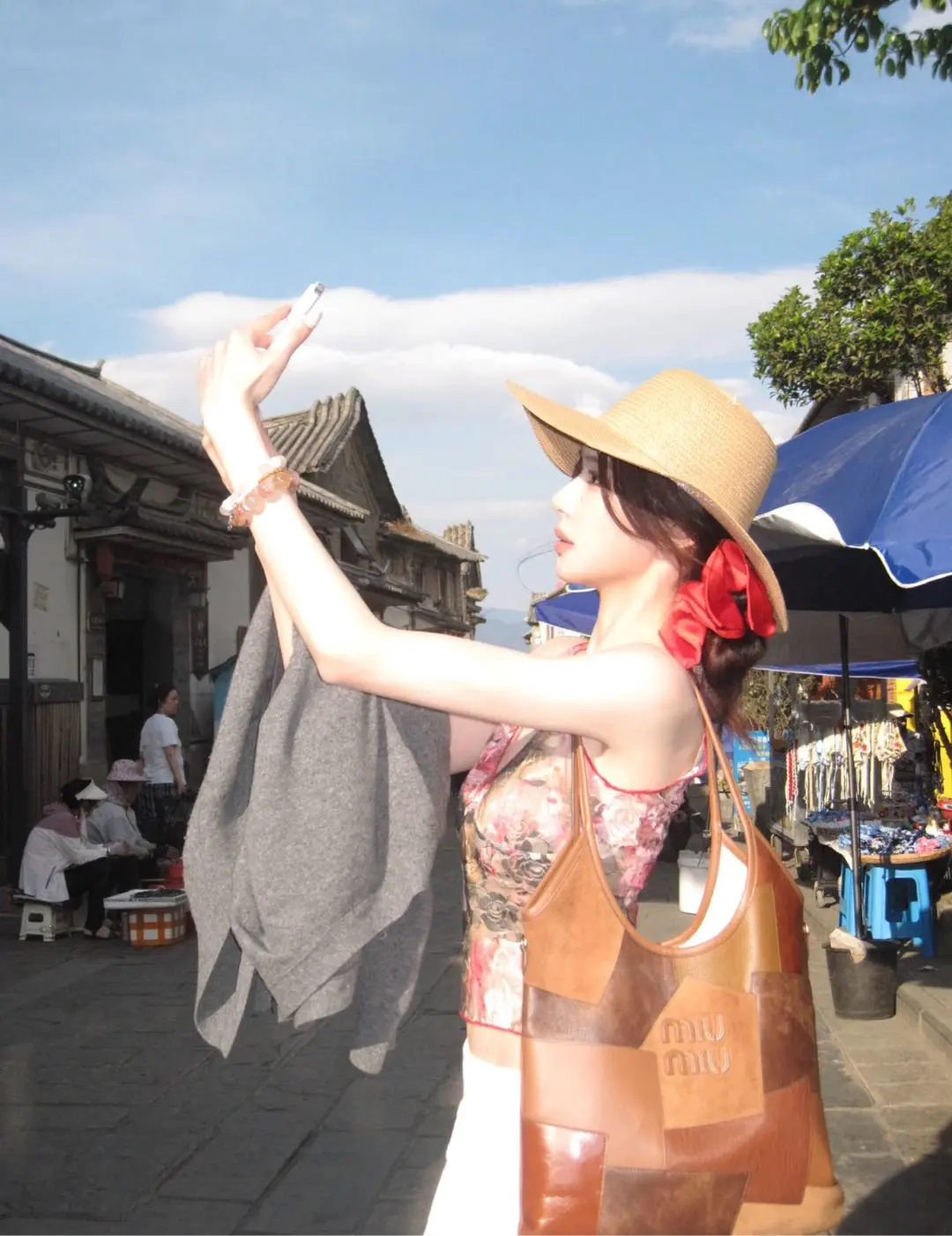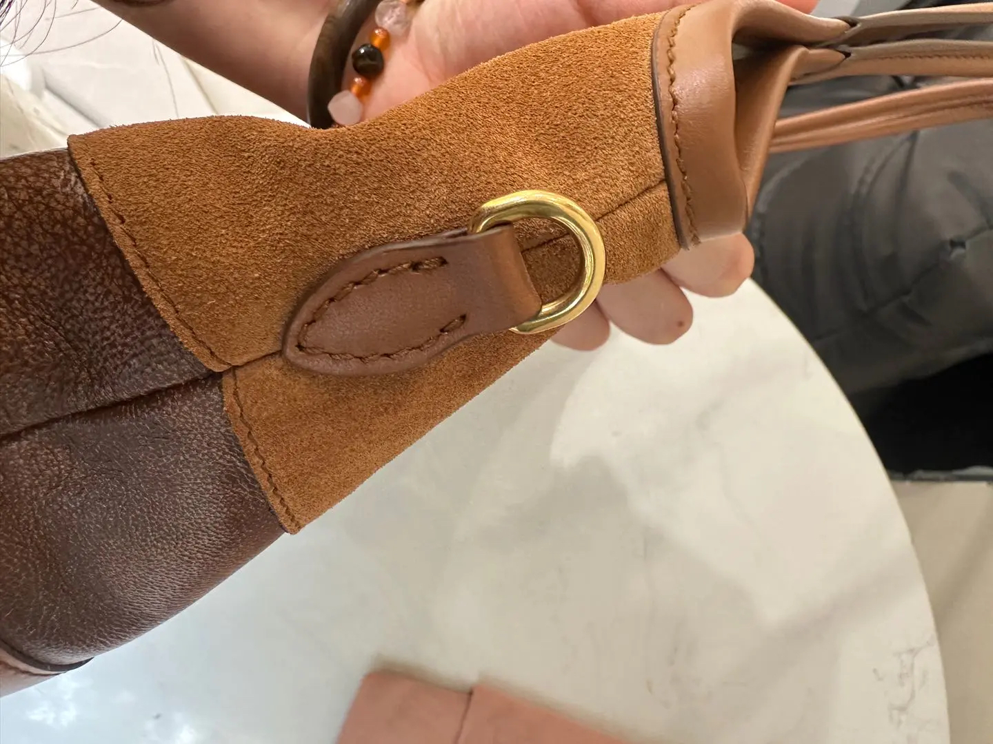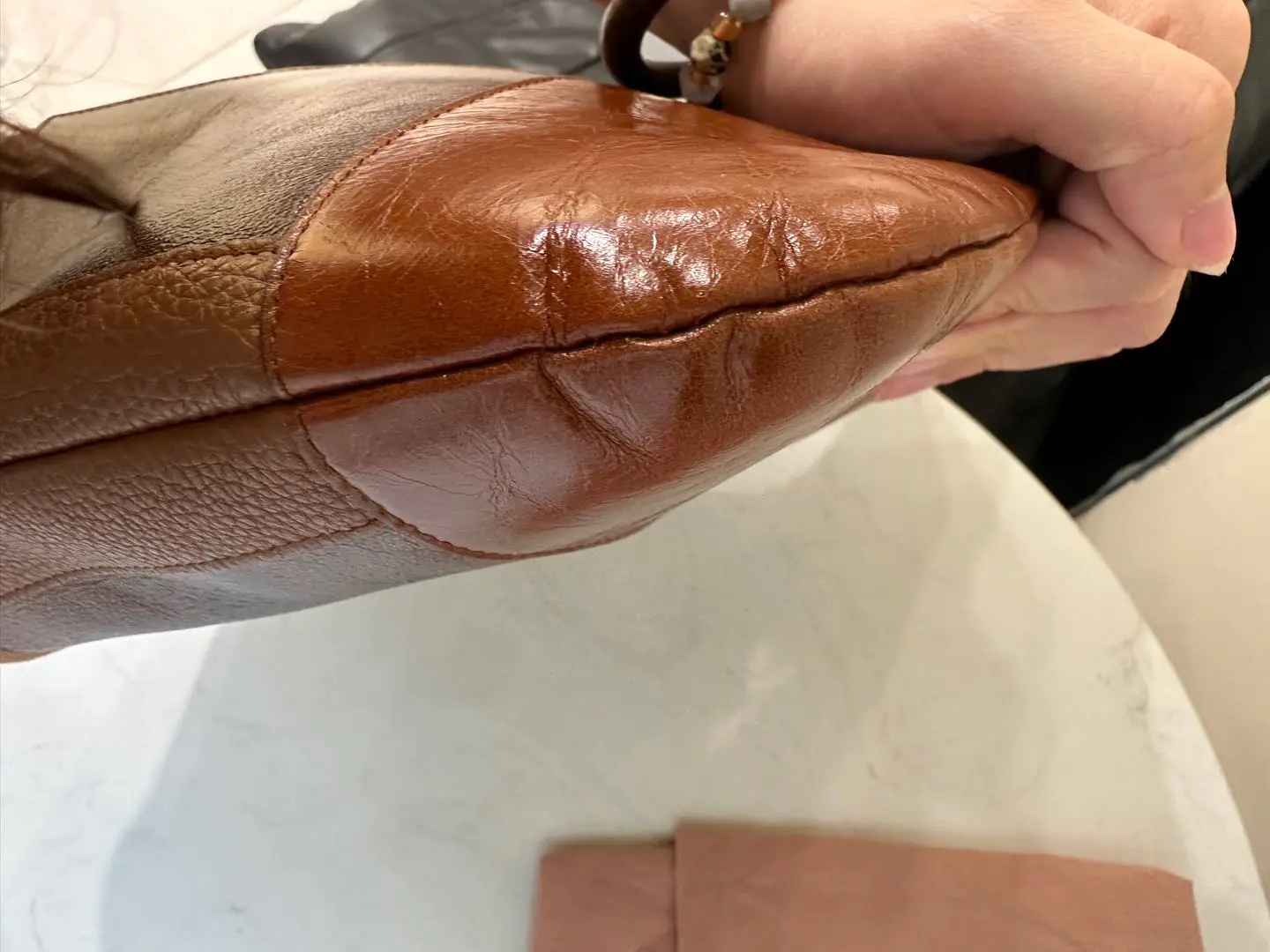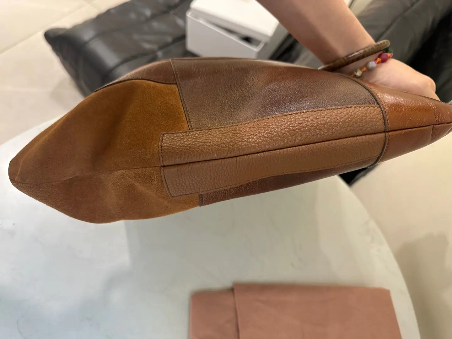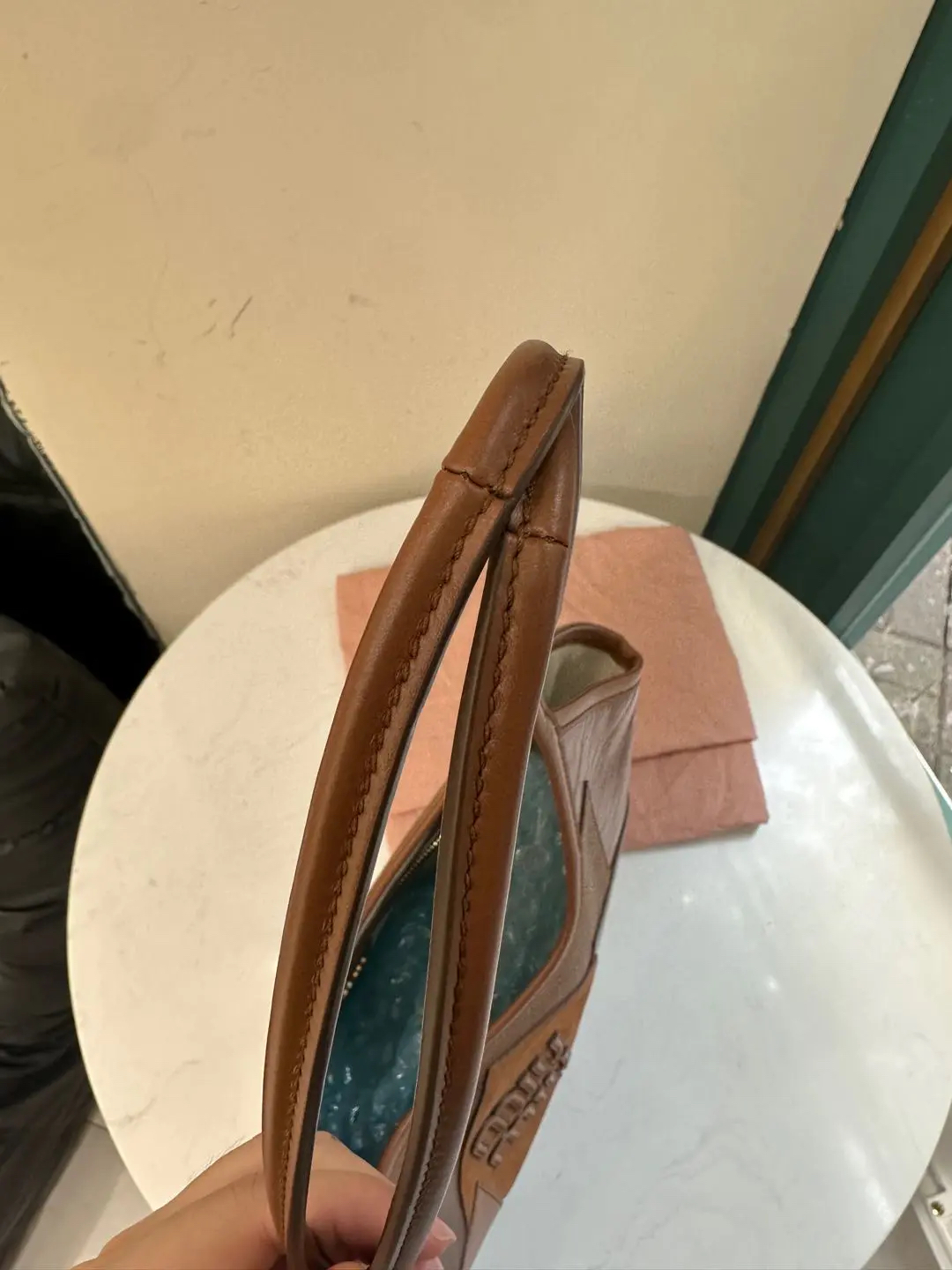 【商品详情】正品二手 缪缪 Ivy皮革拼贴 干邑色 牛皮 单肩包🩷 98新 35×32 配件:卡片 票 防尘袋。今夏复古风