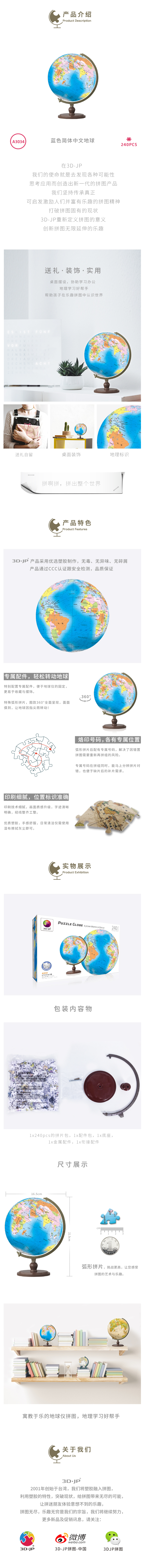 【折扣商品 不退不换】6寸240片 地球仪拼图 塑料拼图 A3034 蓝色简体中文