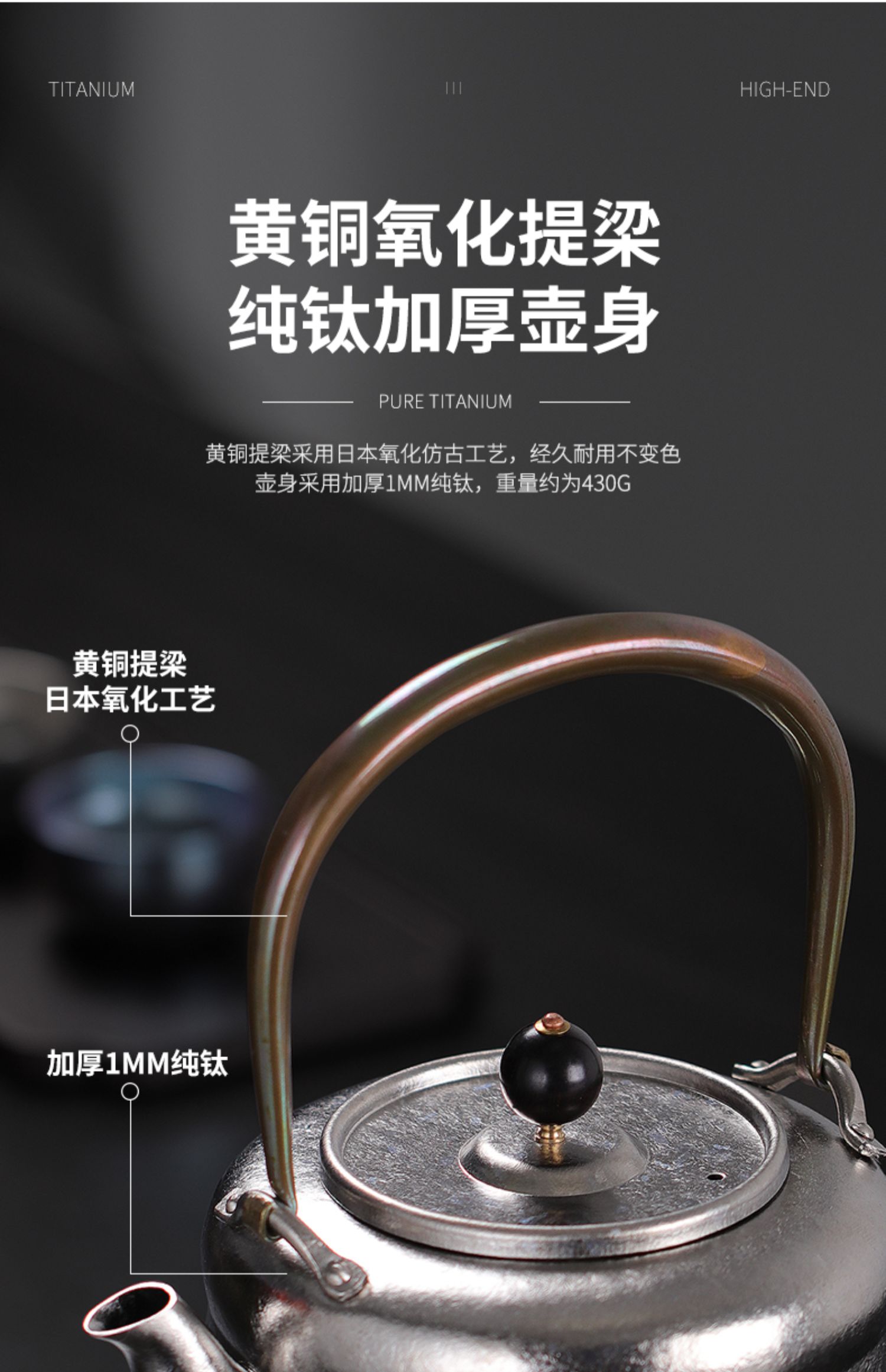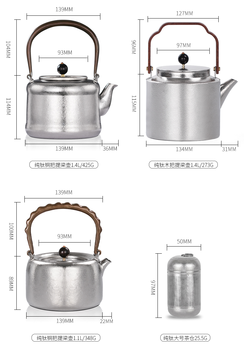 纯钛冰晶烧水壶煮茶壶耐高温钛泡茶提梁烧水壶可明火电陶炉钛茶具